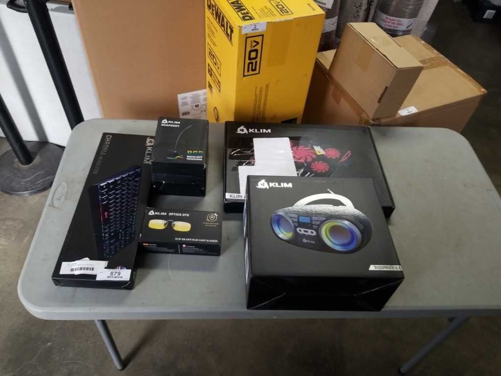 LOT OF KLIM GAMING ACCESSORIES - KEYBOARD, BOOM BOX, LAPTOP COOLER, ETC