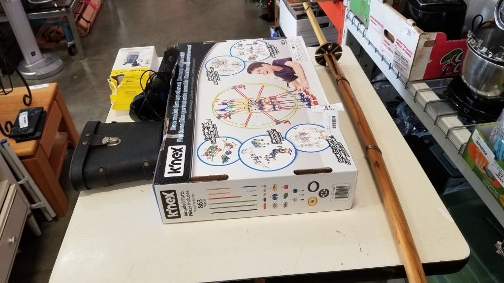 LOT OF KNEX, DECORATIVE SWORD, BINOCULARS