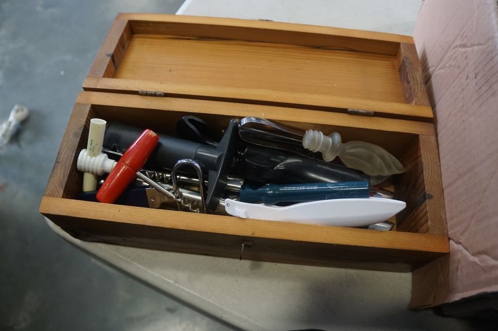 LOT OF KNIVES, CORKSCREWS, BLENDER, KITCHEN ITEMS