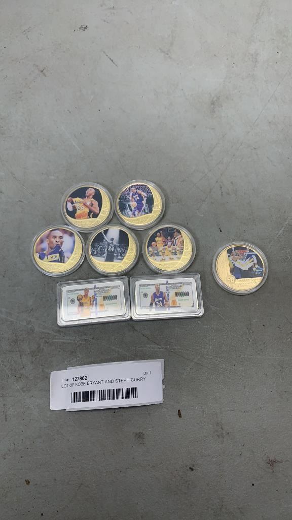 LOT OF KOBE BRYANT AND STEPH CURRY COLLECTIBLE COINS