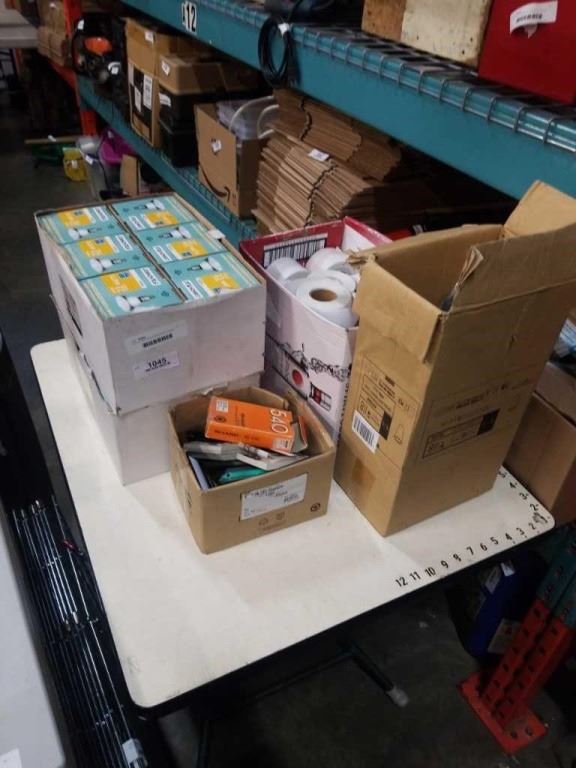 LOT OF MINI WASTE BASKETS, LIGHTS, TAPE AND CALCULATORS