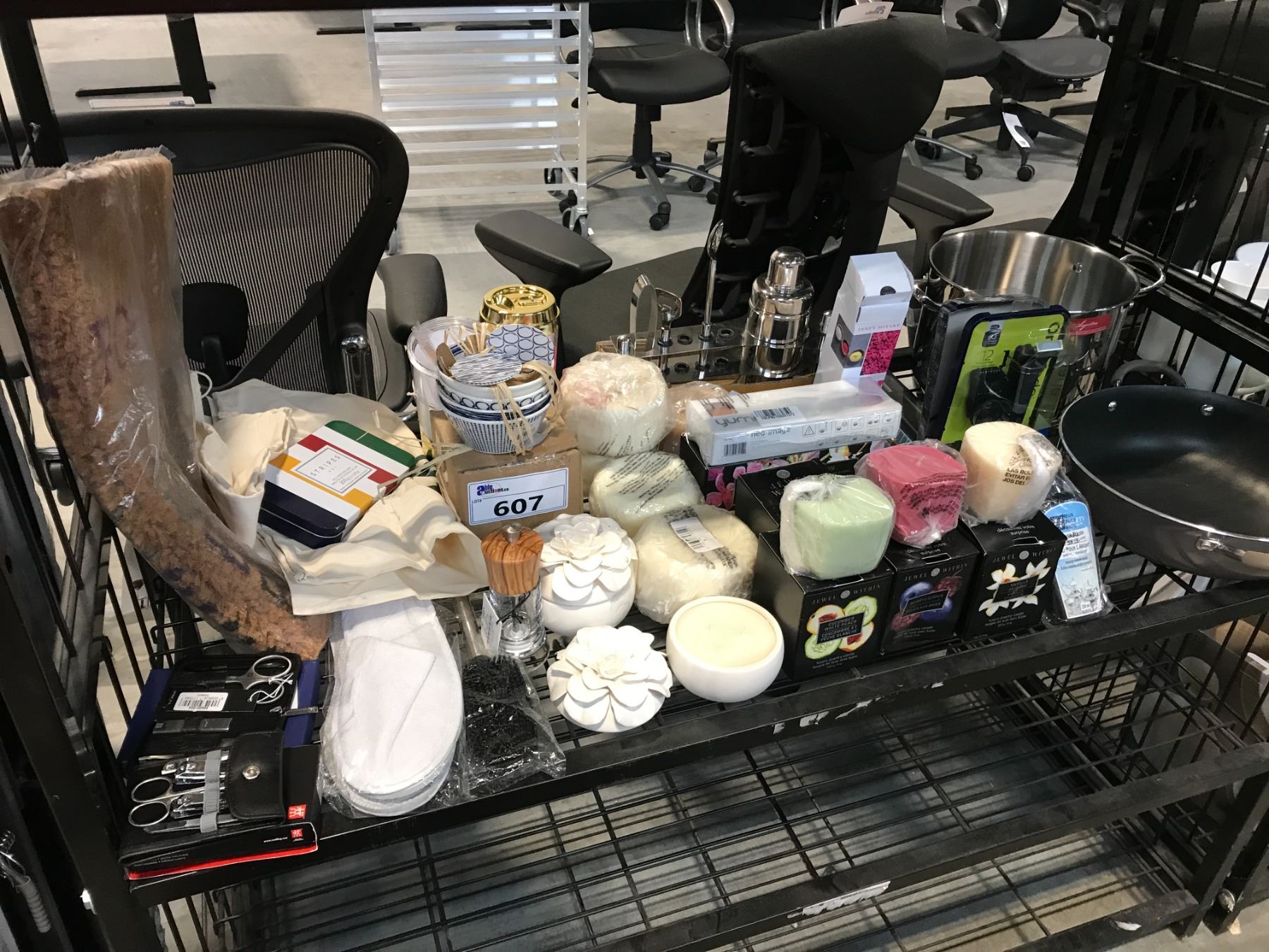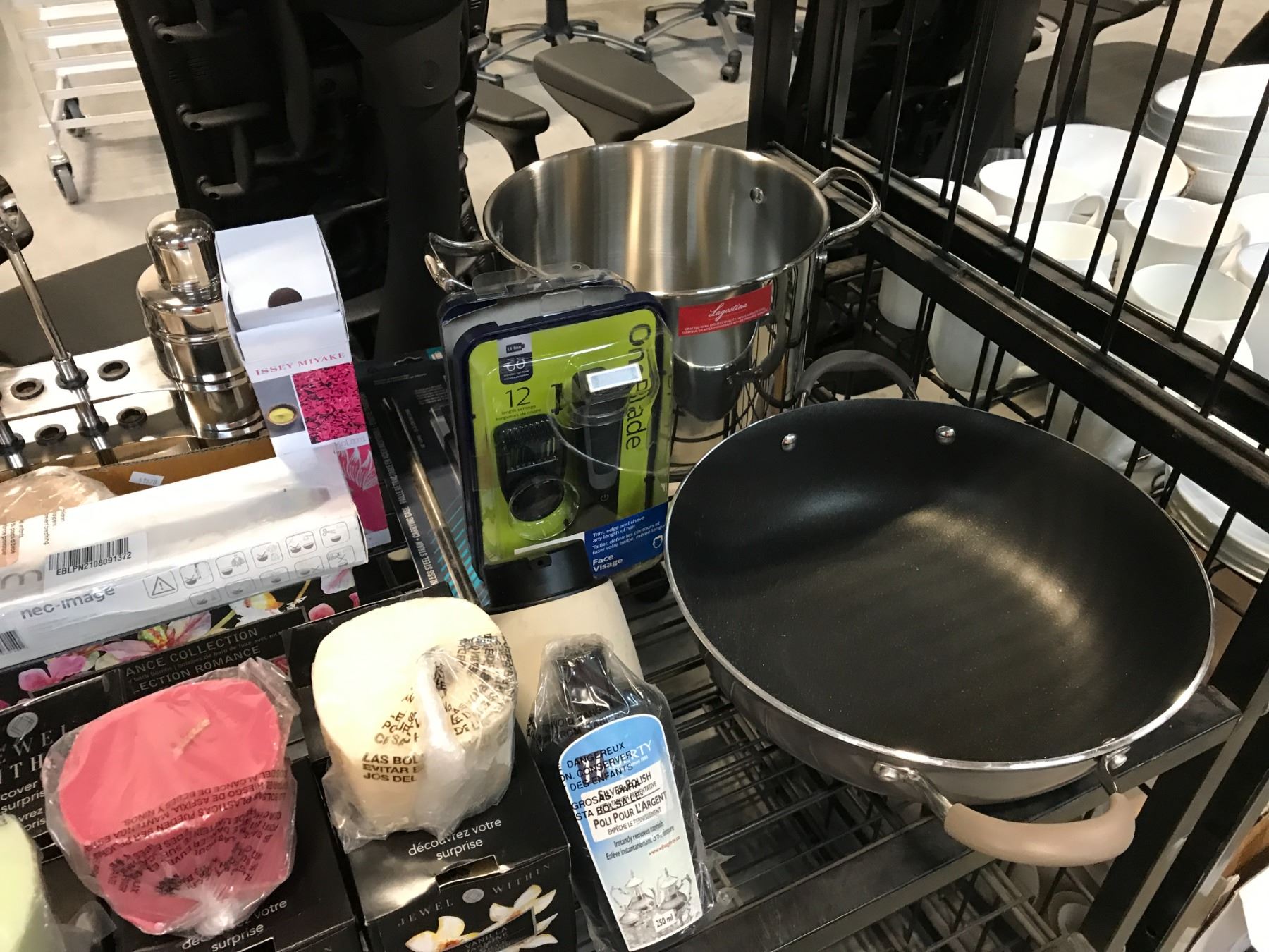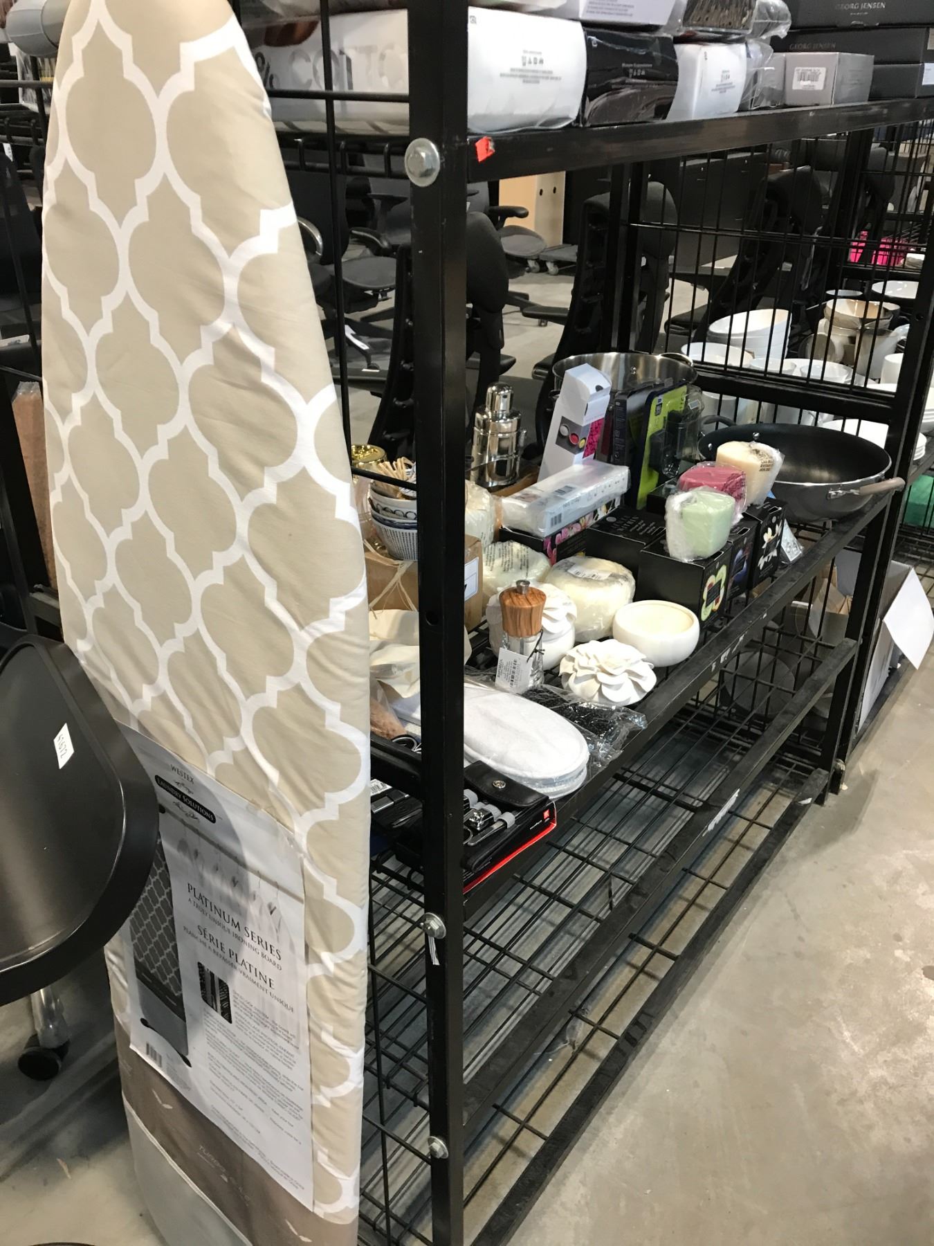 LOT OF MISC. HOUSEHOLD INCLUDING LAGOSTINA COOKWARE, CANDLES, IRONING BOARD AND MORE