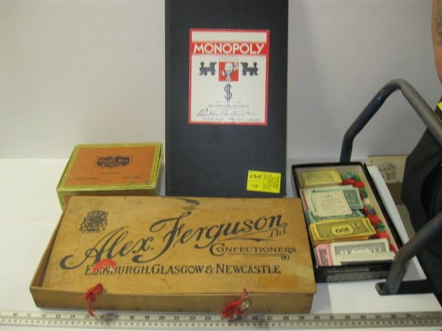 LOT OF MISC. - MONOPOLY GAME, WOODEN BOX, TACK, ETC.
