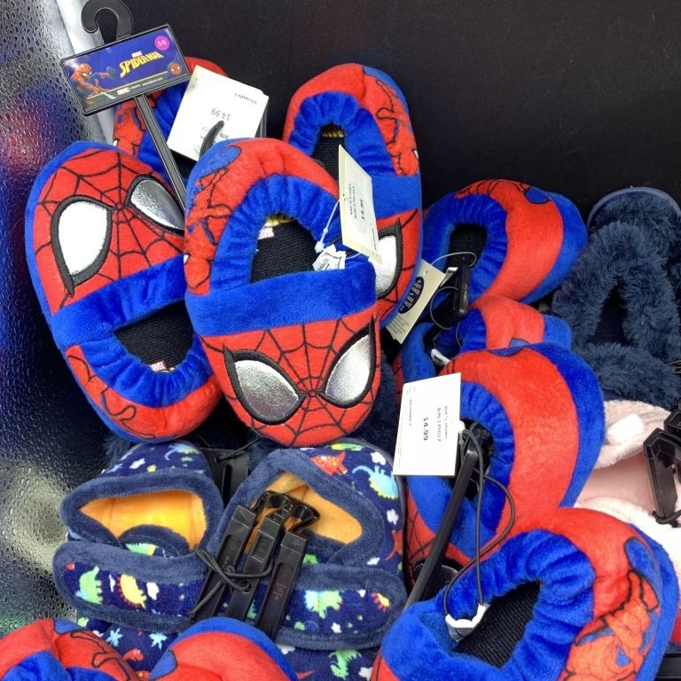 LOT OF NEW CHILD SIZE SLIPPERS AND FOOTWEAR
