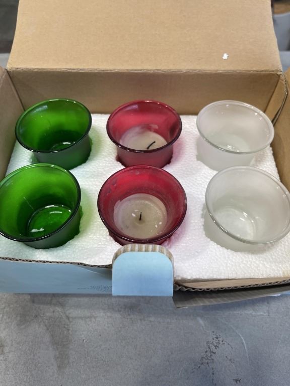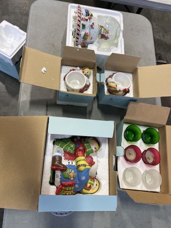 LOT OF NEW CHRISTMAS CANDLE HOLDERS AND SNOW GLOBE