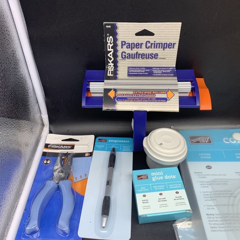 LOT OF NEW CRAFTING TOOLS INCLUDING SMALL LIGHT TABLE AND ROLL OF WHITE PAPER