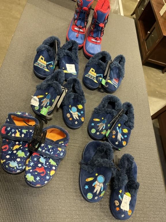 LOT OF NEW INFANT SIZE 9 WINTER BOOTS AND 9/10 SLIPPERS