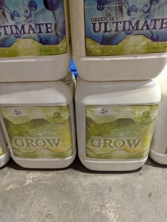 LOT OF NEW LIQUID FERTILIZER 2 MAMMOTH BLOOM (24L), 3 ULTIMATE (10L) AND 5 GROW (10L)