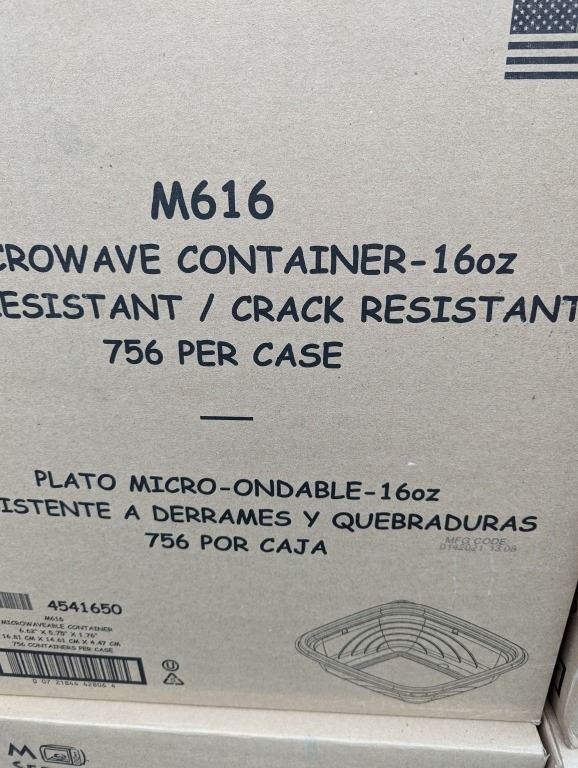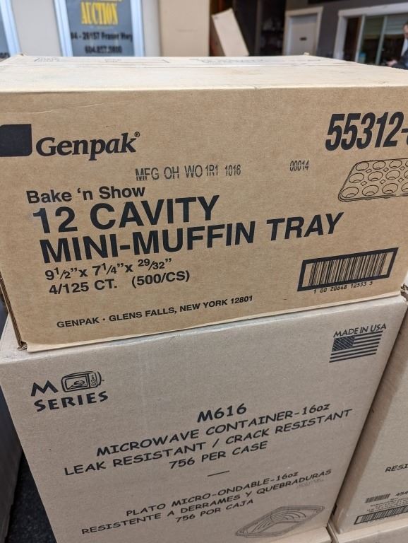 LOT OF NEW M616 MICROWAVE CONTAINERS (756PC) AND 12 CAVITY MINI MUFFIN TRAYS (500PC)