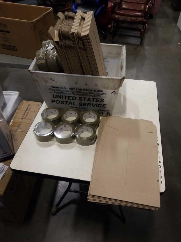 LOT OF NEW SHIPPING BOXES AND PACKING TAPE