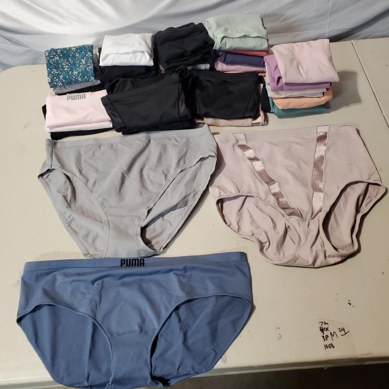 LOT OF NEW SIZE LARGE TO XL LADIES PUMA, CALVIN KLEIN AND MAIDENFORM UNDERWEAR AND PANTIES 33 SIZE LARGE AND 14 SIZE X-LARGE