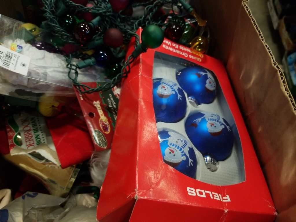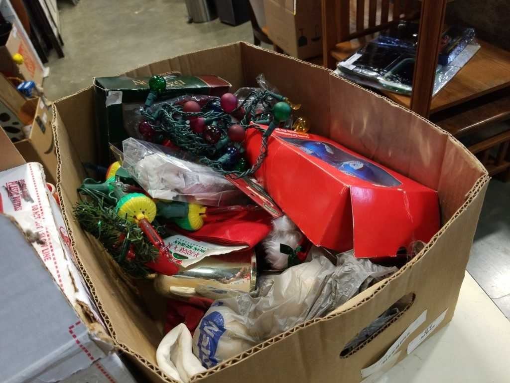 LOT OF NOMA BUBBLE LIGHTS CHRISTMAS LIGHTS AND BOX OF XMAS DECOR