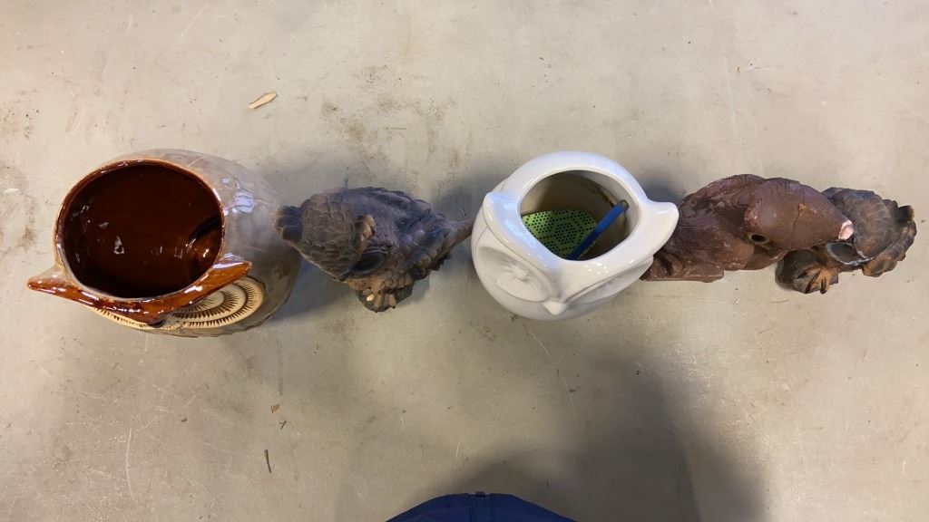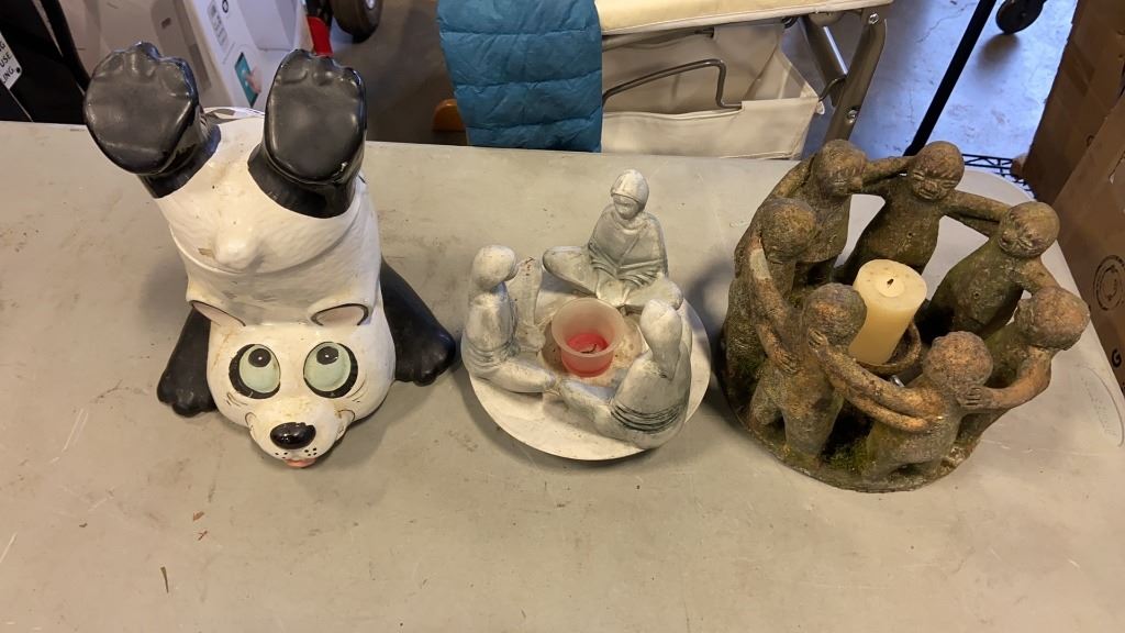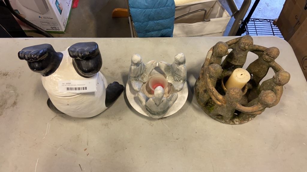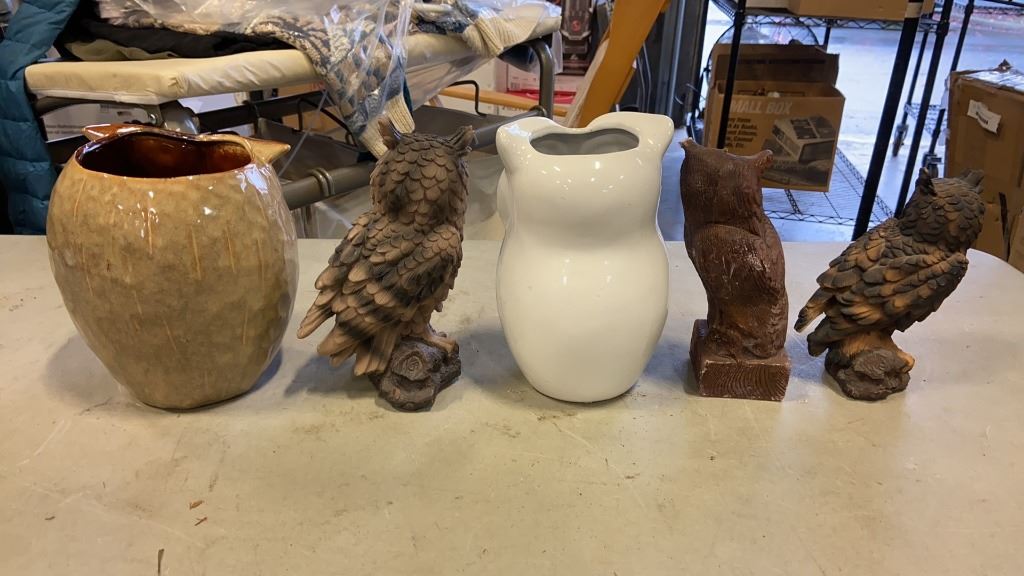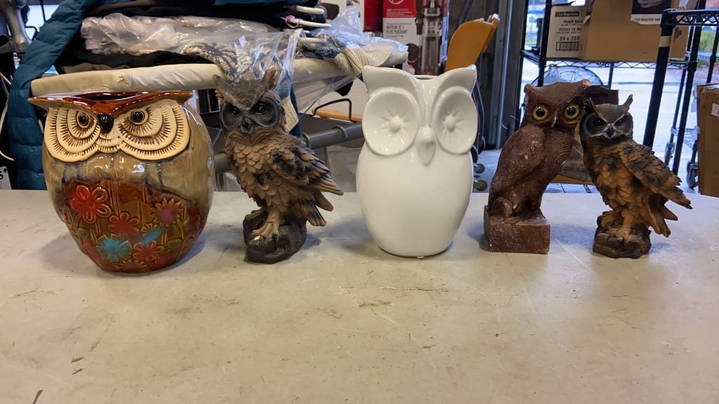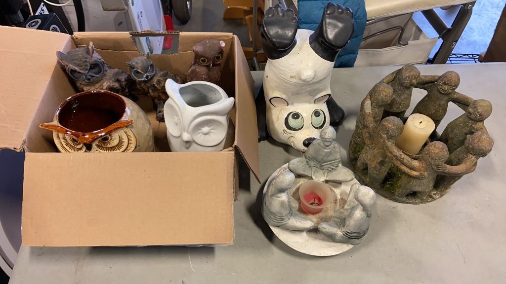 LOT OF OWL STATUES, FRIENDSHIP CIRCLE, PANDA COOKIE JAR AND MORE