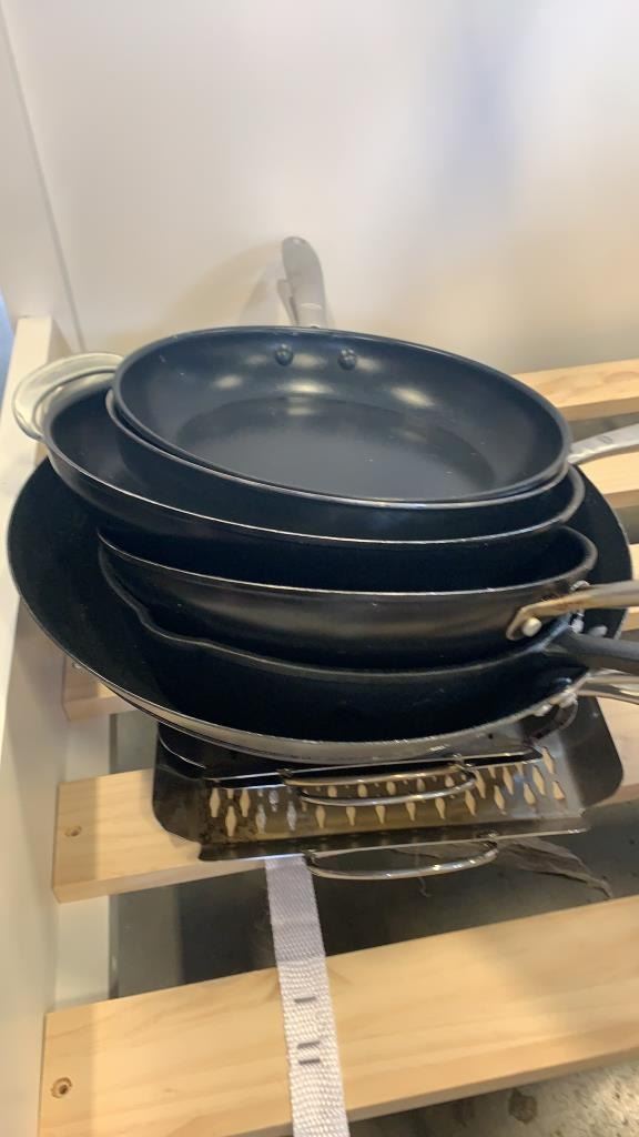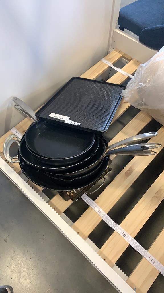 LOT OF OXO PANS, LAGOSTINA, CAST IRON AND ROCK GRILL