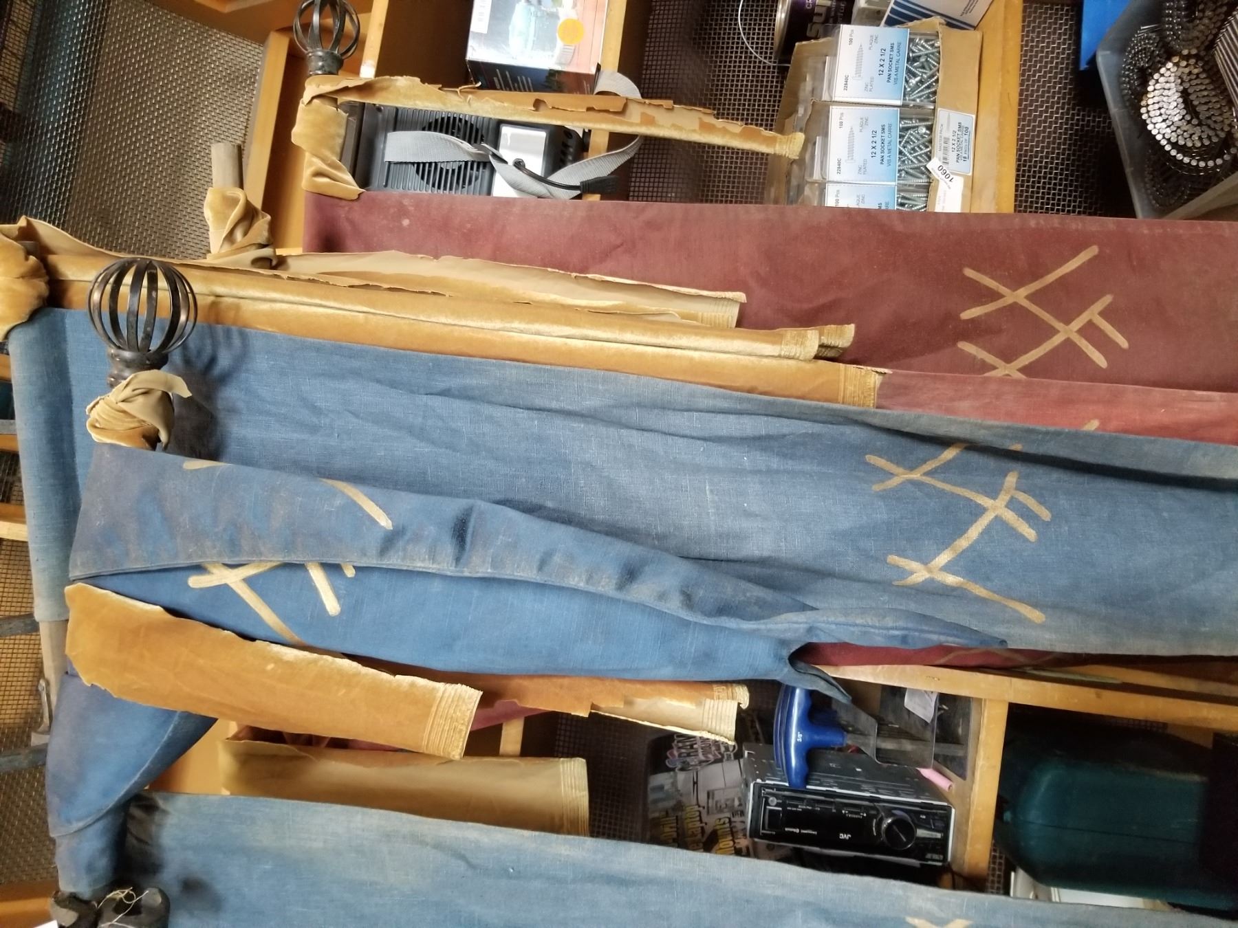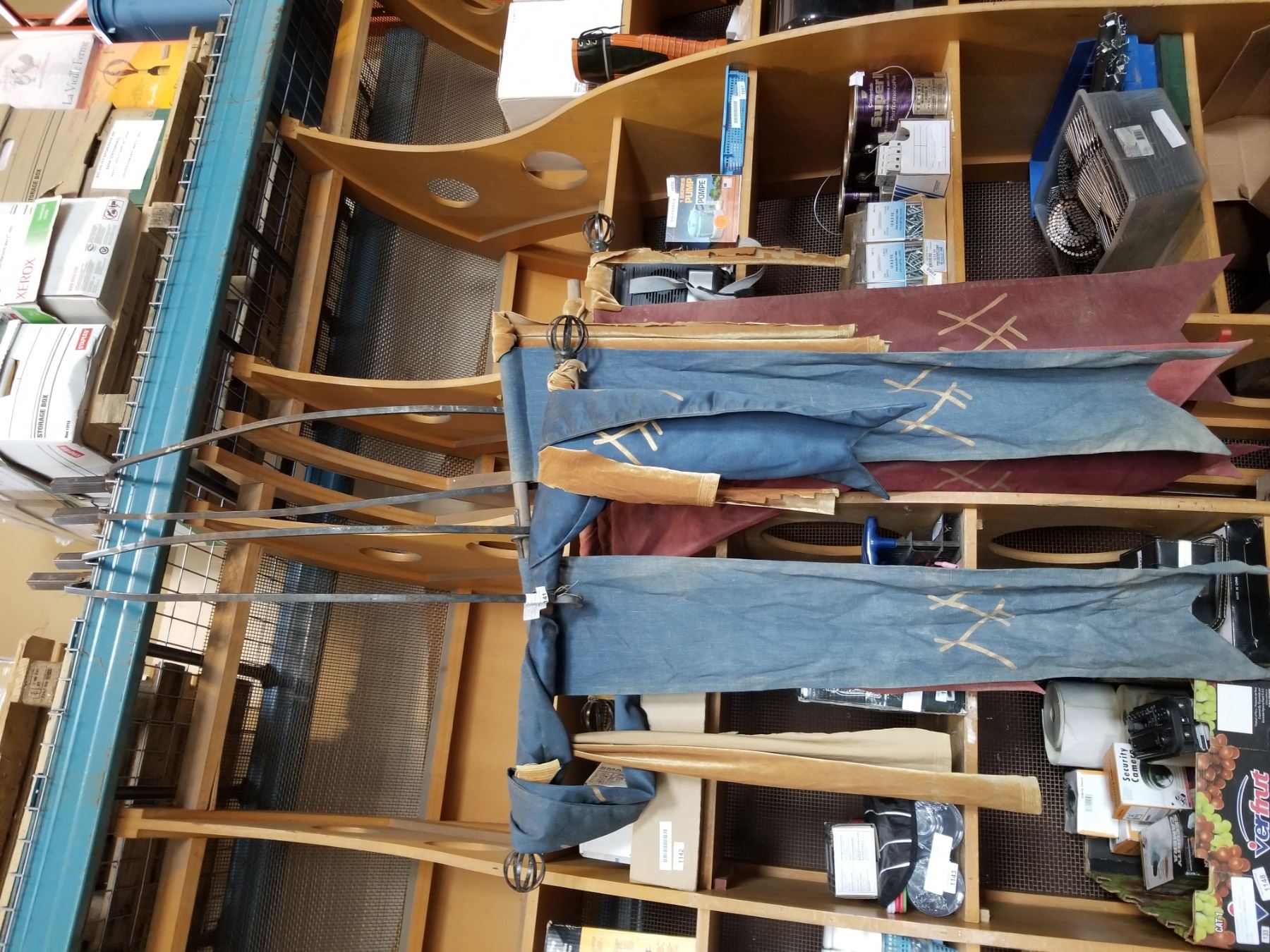 LOT OF PENDANTS AND BANNERS ON METAL STANDS FROM THE SET OF "MAGICIAN"