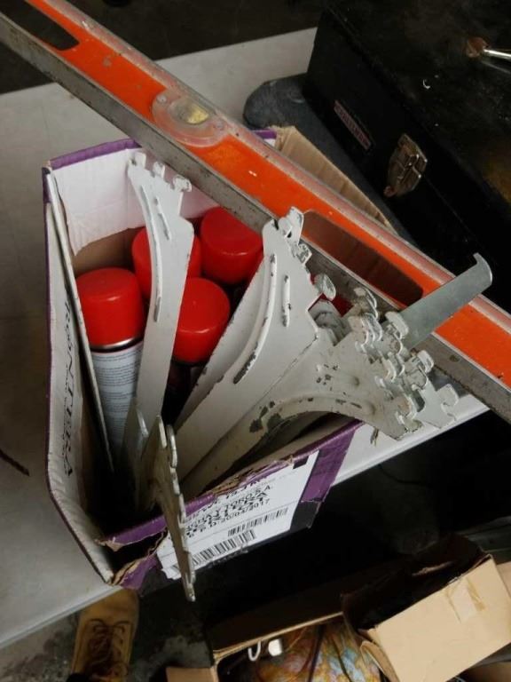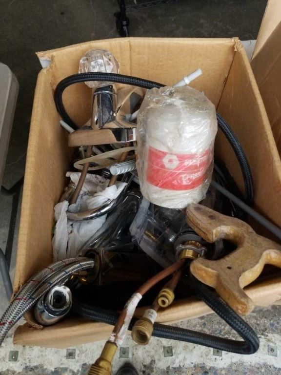 LOT OF PLUMBING, HARDWARE, ELECTRICAL ENCLOSURES, SHELF BRACKETS, FLASH DASH