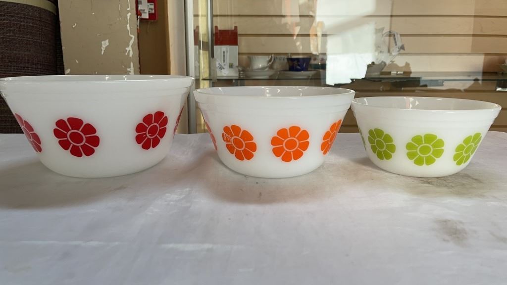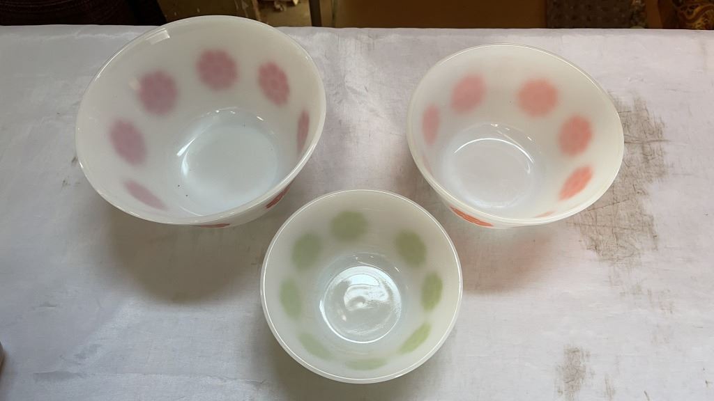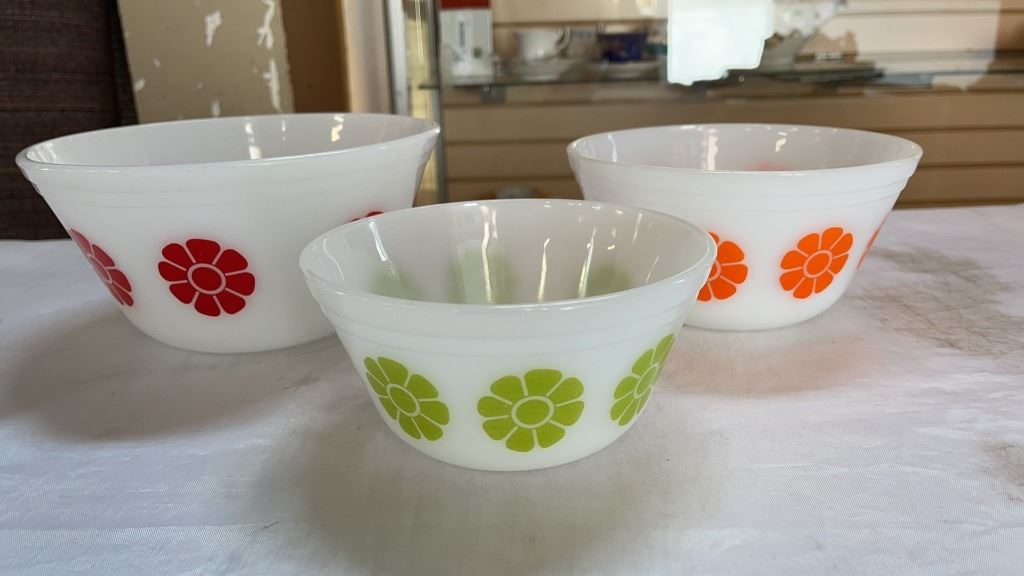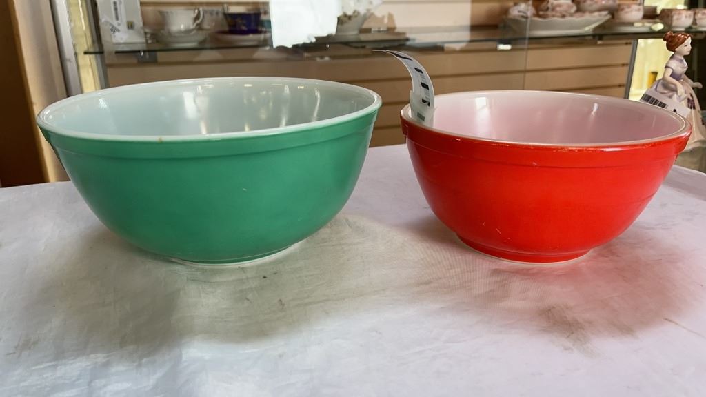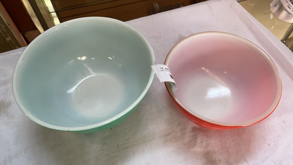 LOT OF PYREX AND FIRE KING MIXING BOWLS AND BAKEWARE