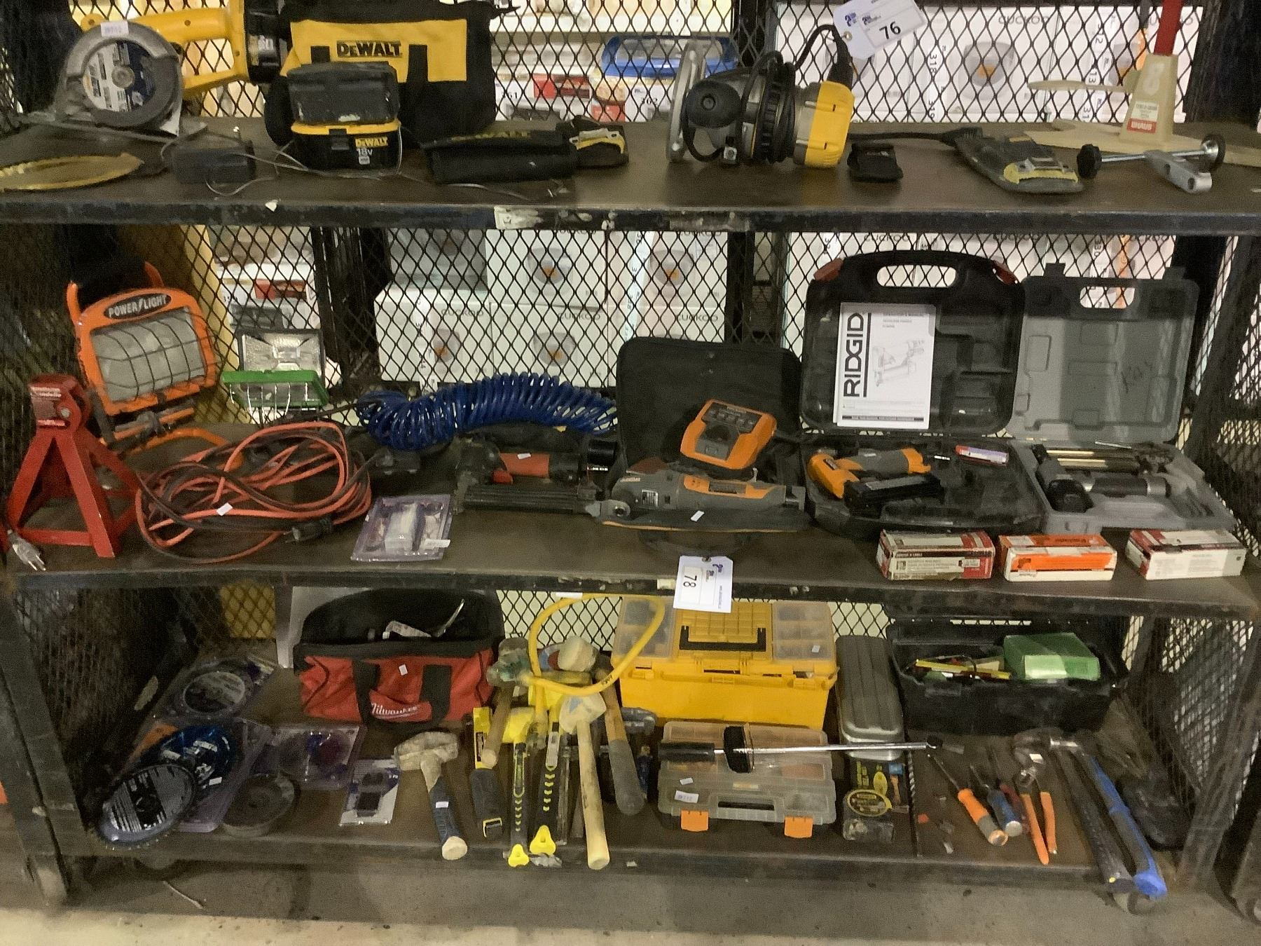LOT OF RIDGID TOOLS, INCLUDES BRAD NAILER, 12V MULTI TOOL, WORKLIGHT, AND MORE