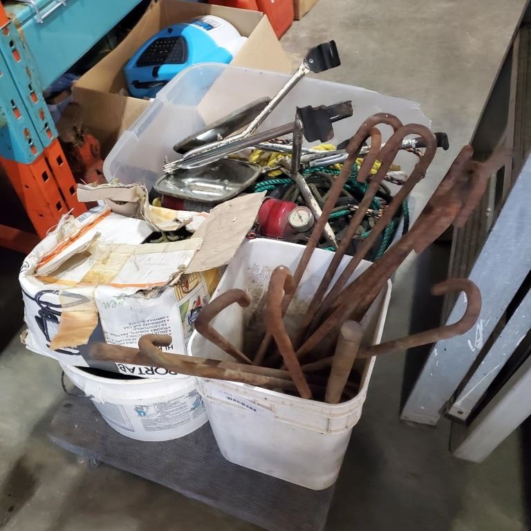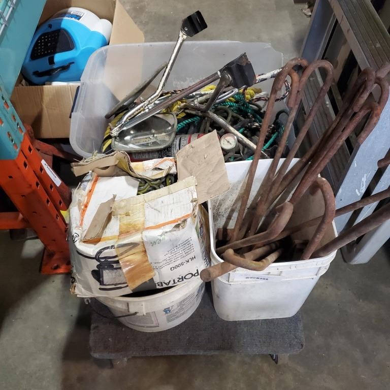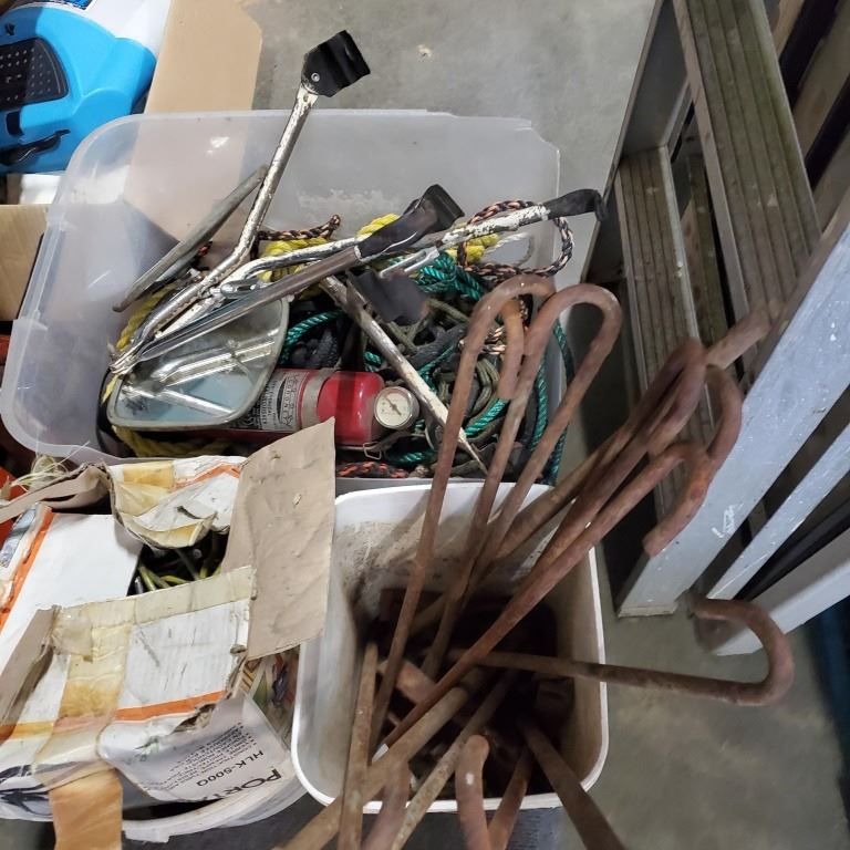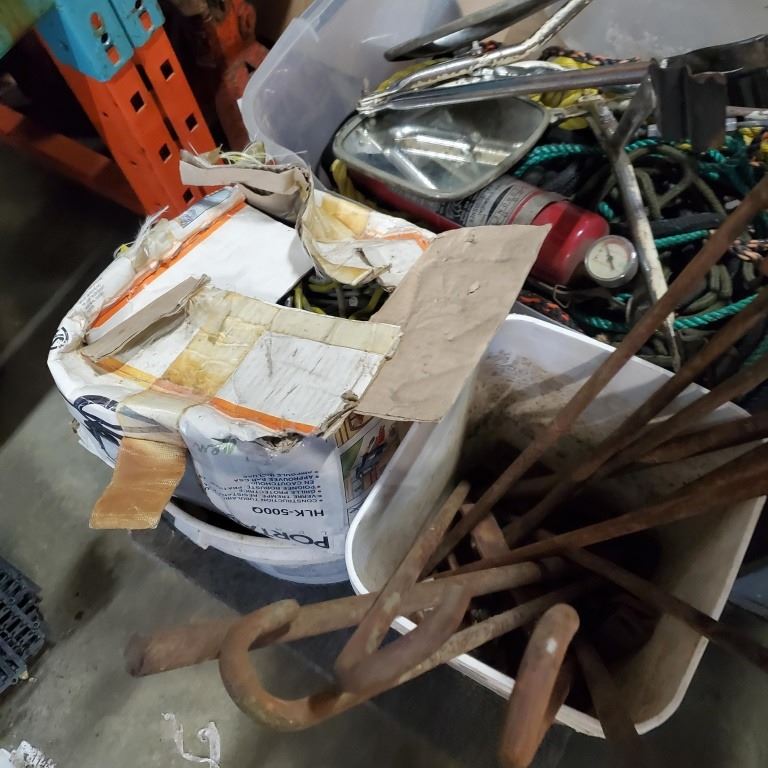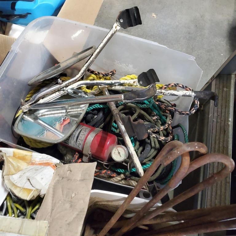 LOT OF ROPE, TRUCK MIRRORS, ANCHOR BOLTS AND MORE