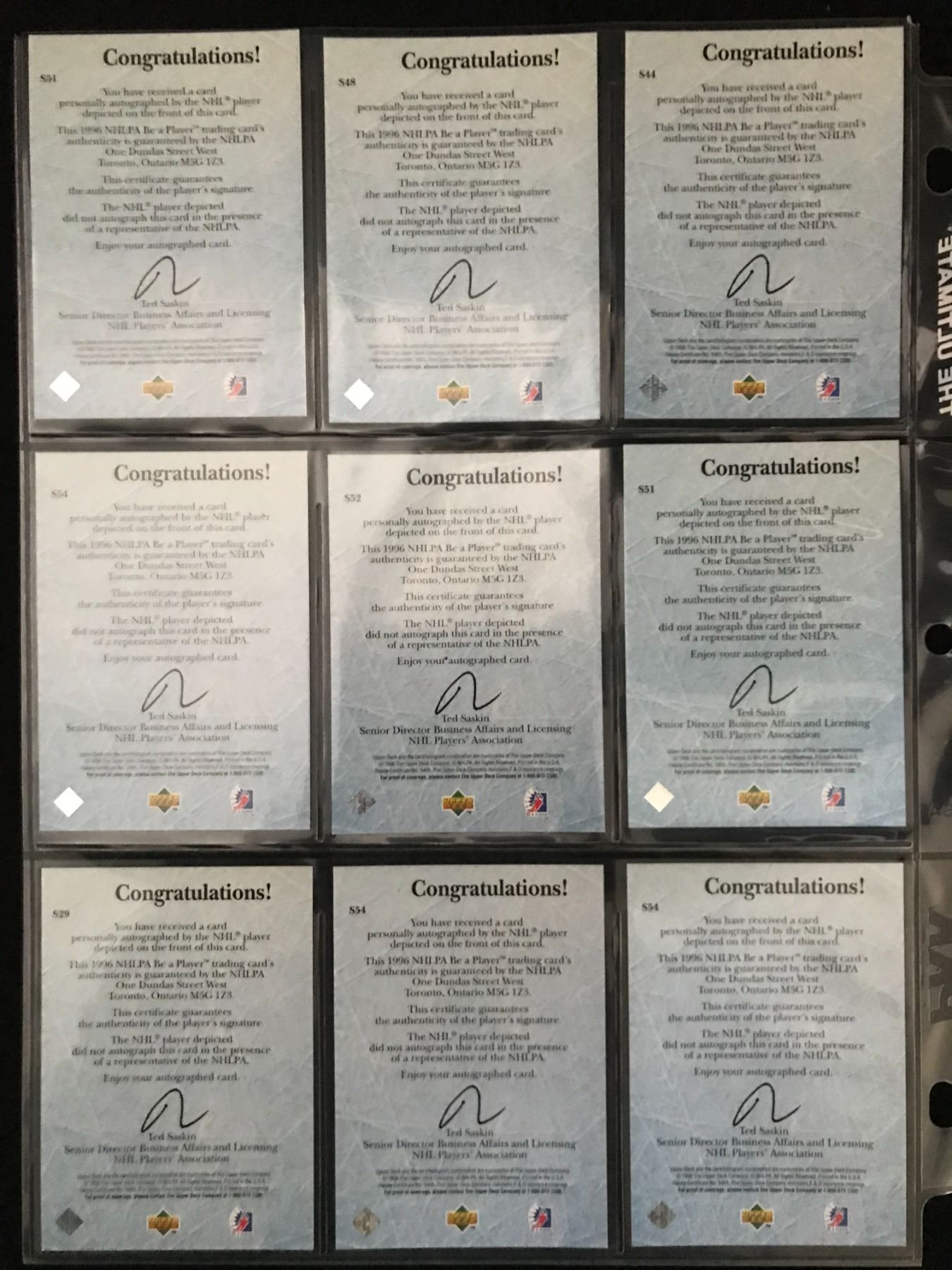 LOT OF SIGNED NHL STAR CARDS