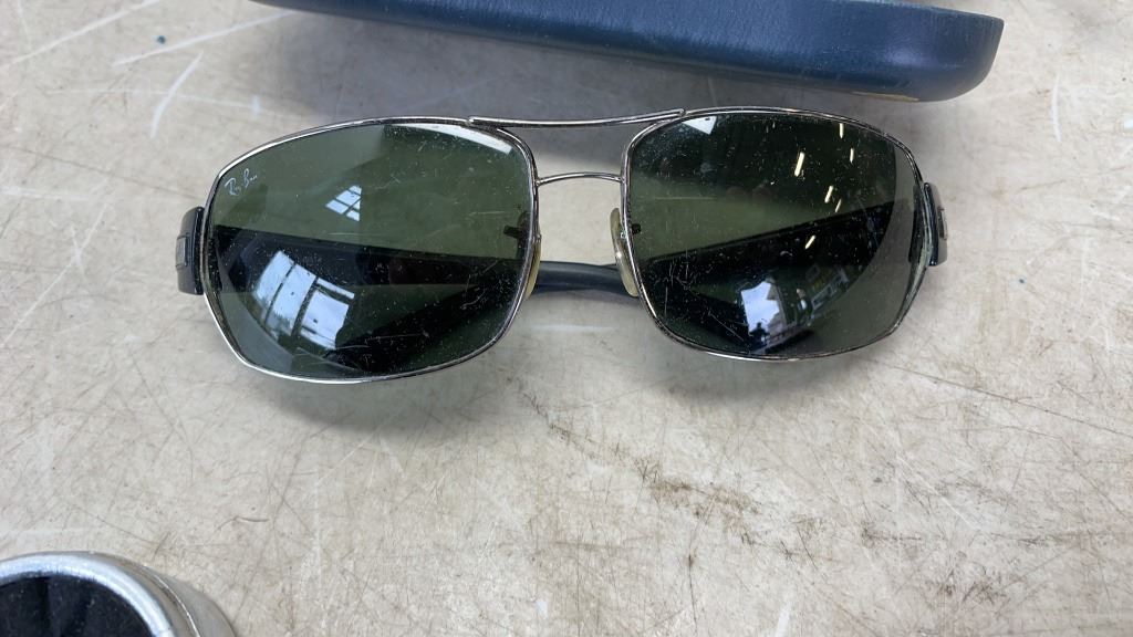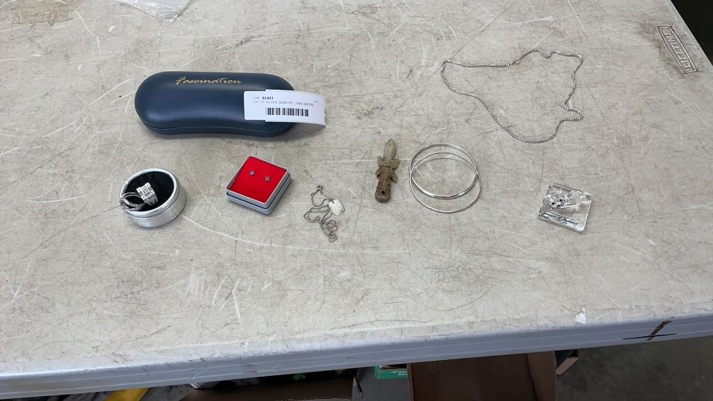 LOT OF SILVER JEWELRY, JADE SWORD, CRYSTAL KITTEN AND RAYBAN SUNGLASSES