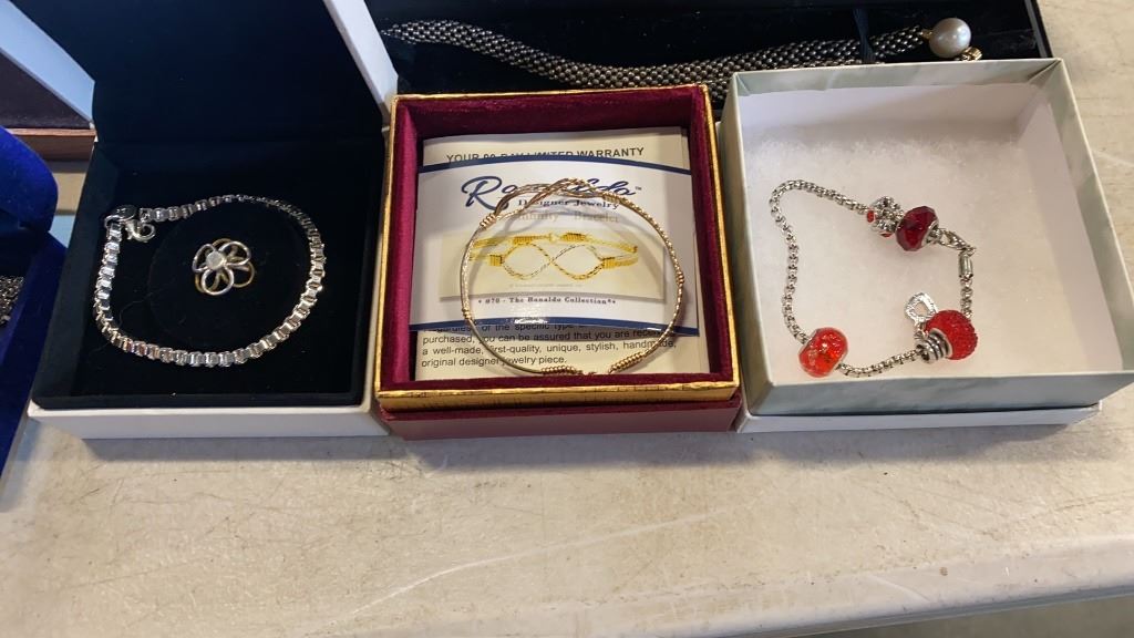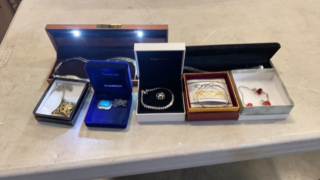 LOT OF SILVER NECKLACES, BRACELETS AND MORE
