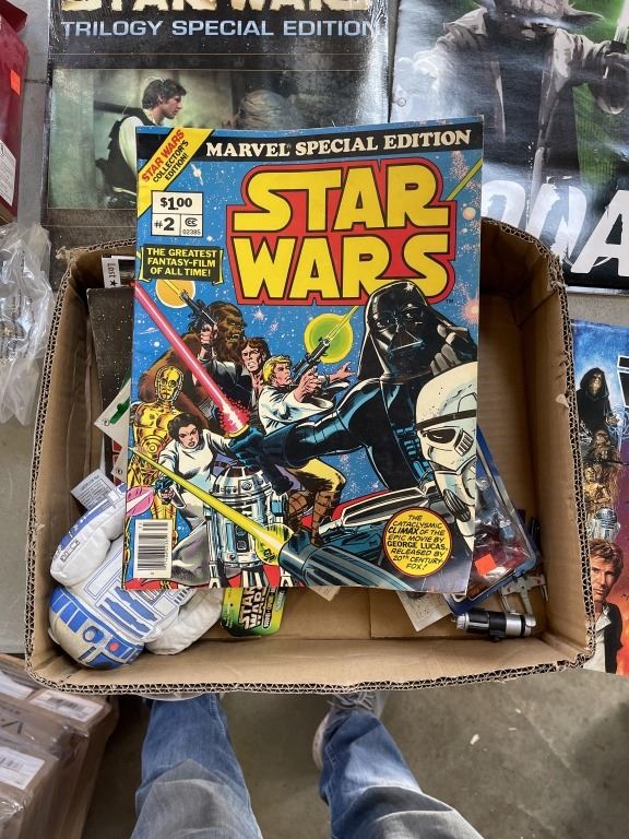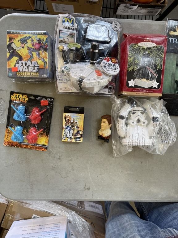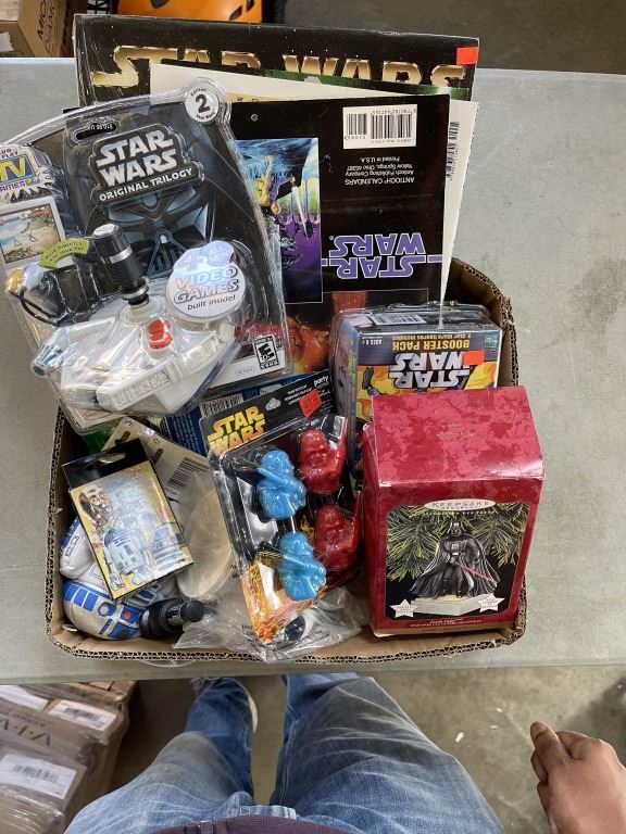 LOT OF STARWARS COLLECTIBLES INCLUDING CALENDAR, STAIONARY, ACTION FIGURES, RETAIL $149