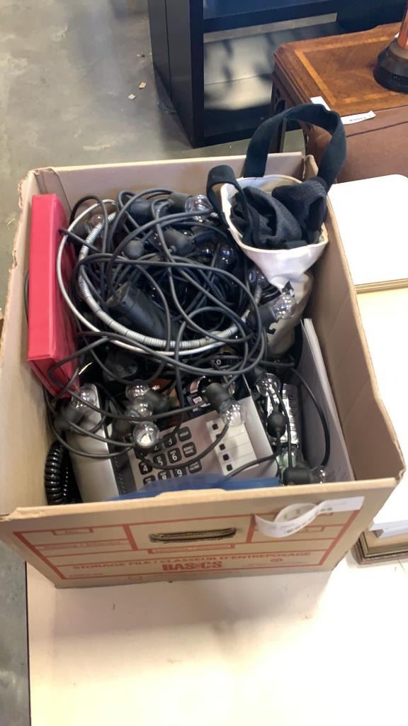 LOT OF STRING LIGHTS AND HOME PHONE SYSTEM, CITY PRINTS SPORTS BRAS AND ART
