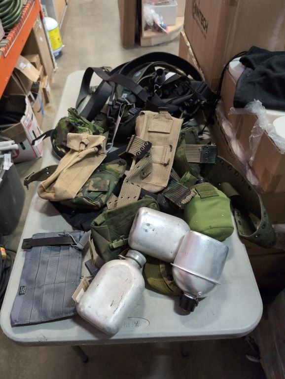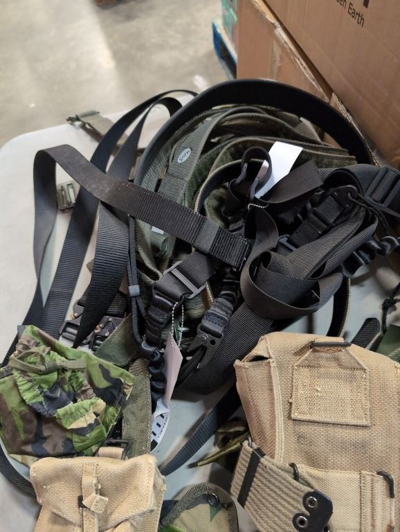 LOT OF TACT5ICAL SLINGS, BELTS AND MILITARY ITEMS