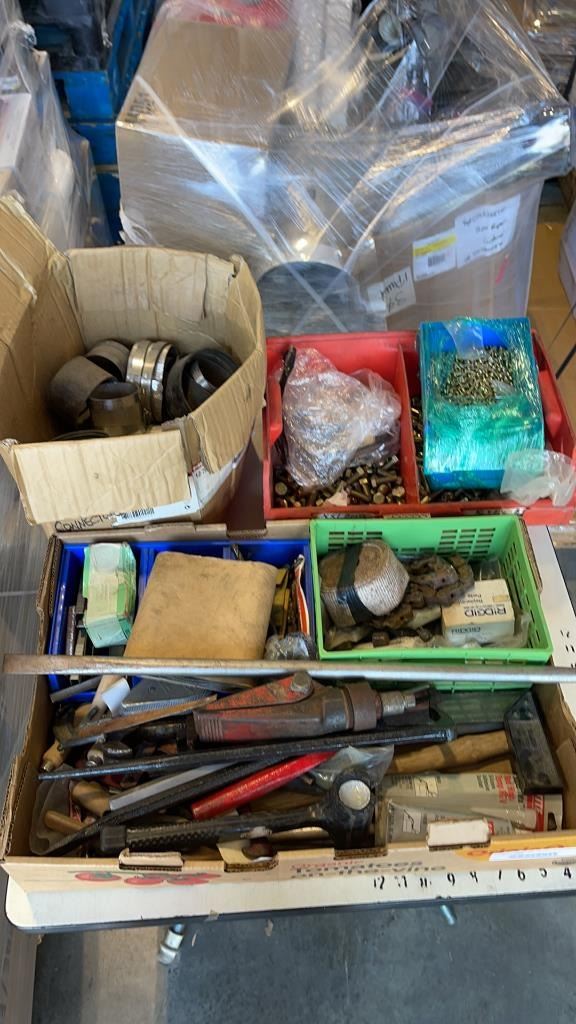 LOT OF TOOLS, PIPR CONNECTORS AND HARDWARE