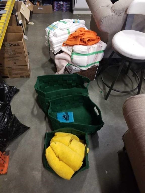 LOT OF TOWELS AND BASKETS