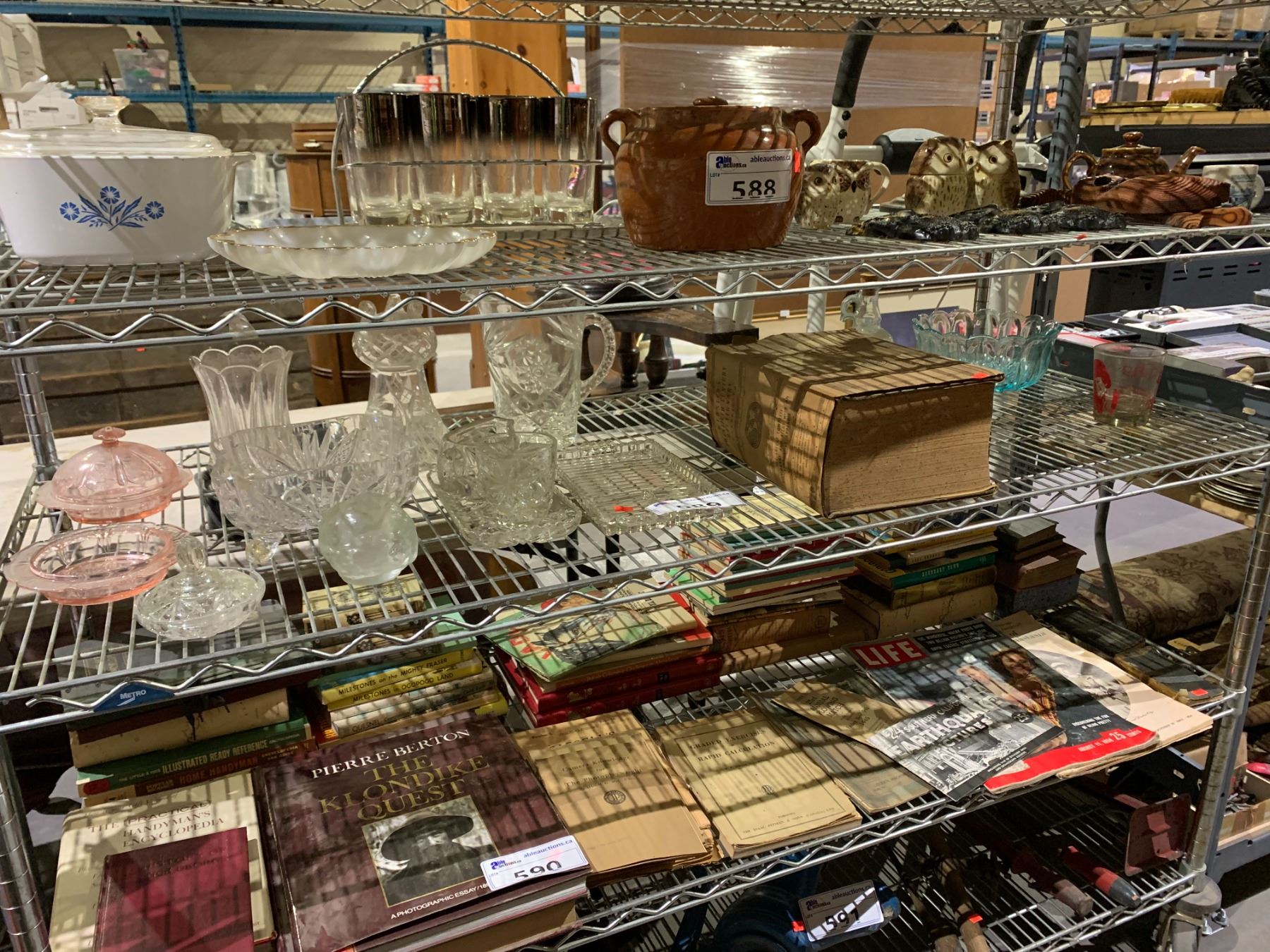 LOT OF TWENTIETH CENTURY DICTIONARY UNABRIDGED, GLASS DISHES AND MORE