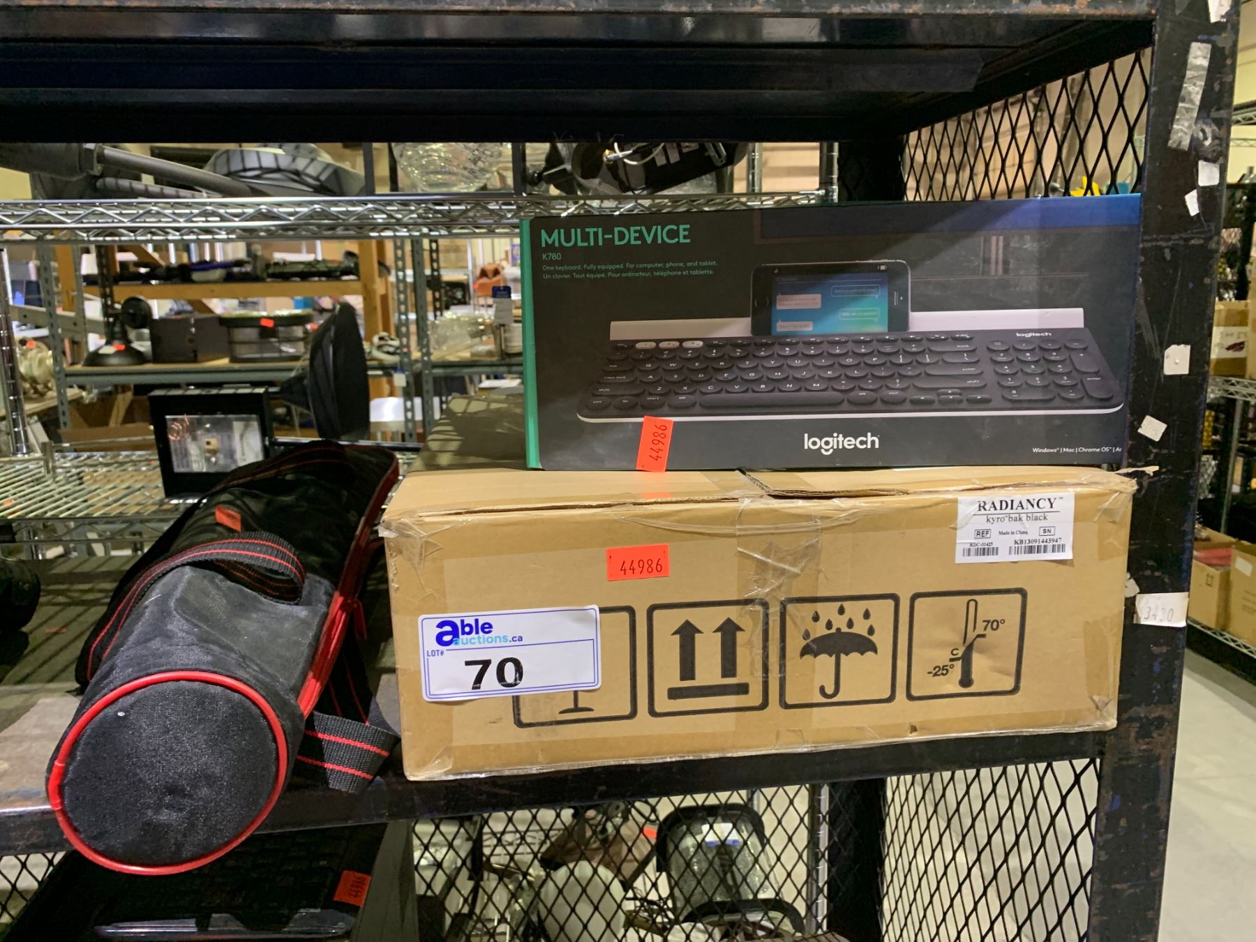 LOT OF VELBON VICTORY 450 TRIPOD, MULTI DEVICE KEY BOARD AND MORE