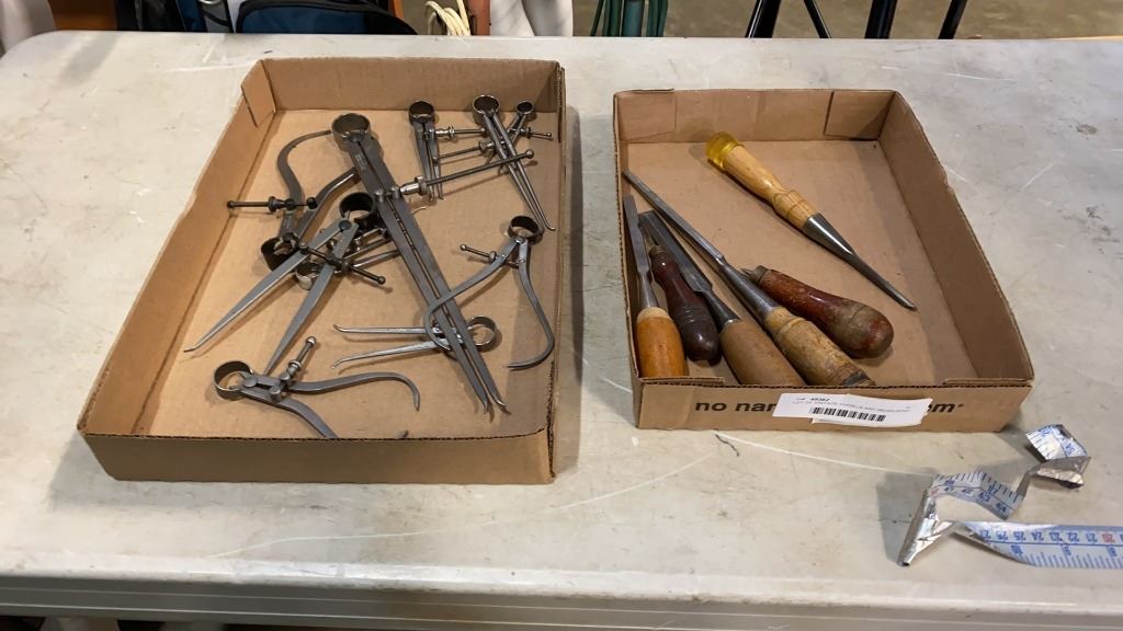 LOT OF VINTAGE CHISELS AND MEASURING GUAGES