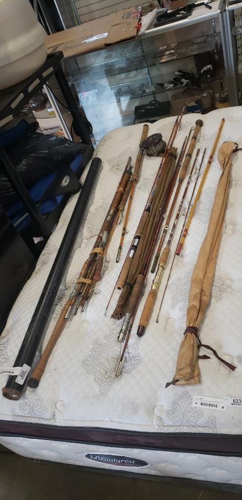 LOT OF VINTAGE FISHING RODS AND REELS
