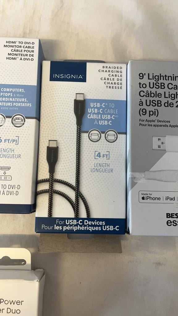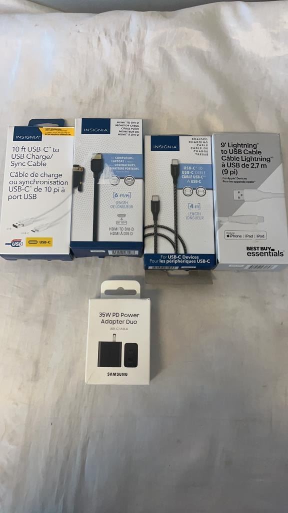 LOT OF WALL CHARGER AND CHARGE CABLES