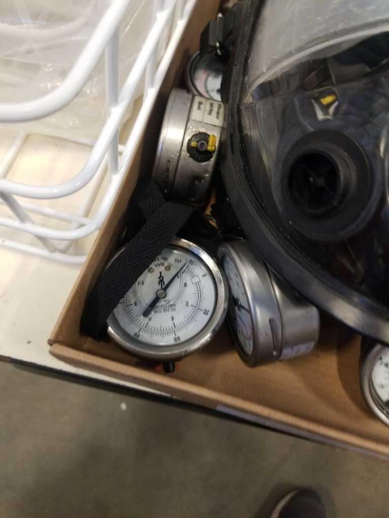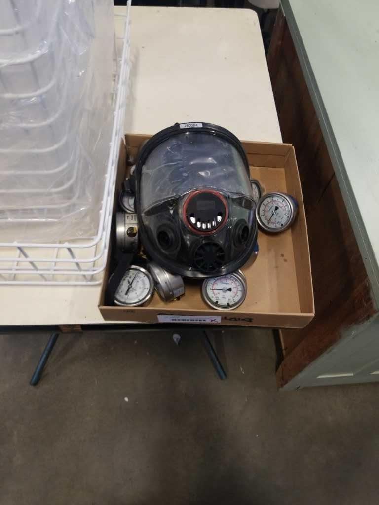 LOT OF WIRE CAGES, FACE RESPIRATOR AND GAUGES