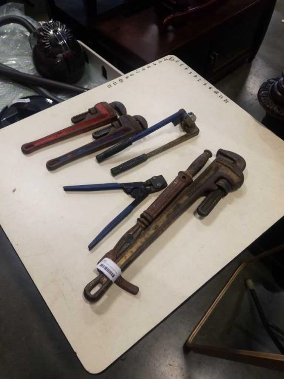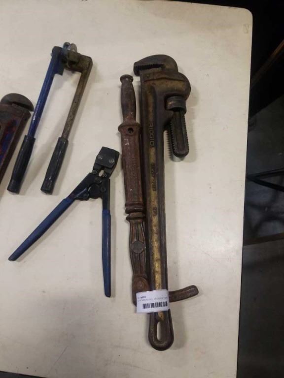 LOT OF WRENCHES, CRESCENT NAIL PULLER, RIDGID AND OTHER TOOLS