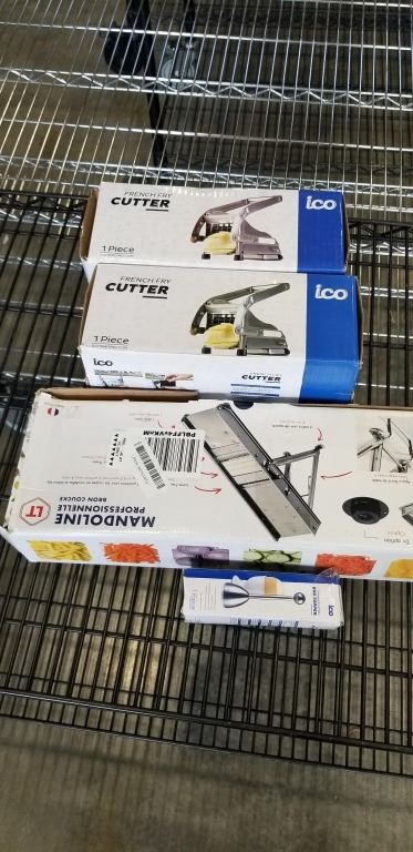 LOUIS TELLIER PROFESSIONAL MANDOLIN SLICER, 2 ICO FRENCH FRY CUTTERS AND STAINLESS EGG TOPPER