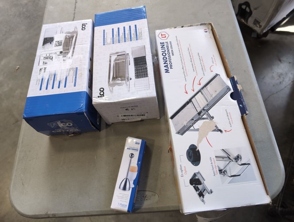 LOUIS TELLIER PROFESSIONAL MANDOLIN SLICER, 2 ICO FRENCH FRY CUTTERS AND STAINLESS EGG TOPPER
