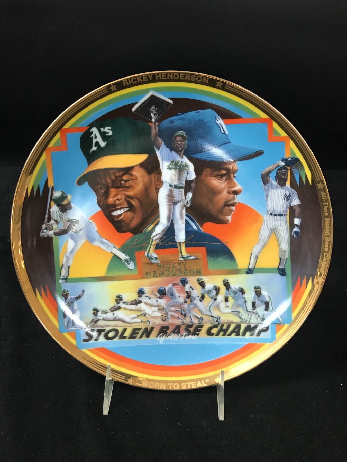 LTD EDITION FRANKLIN MINT RICKEY HENDERSON STOLAN BASEB CHAMP 14  PLATE
