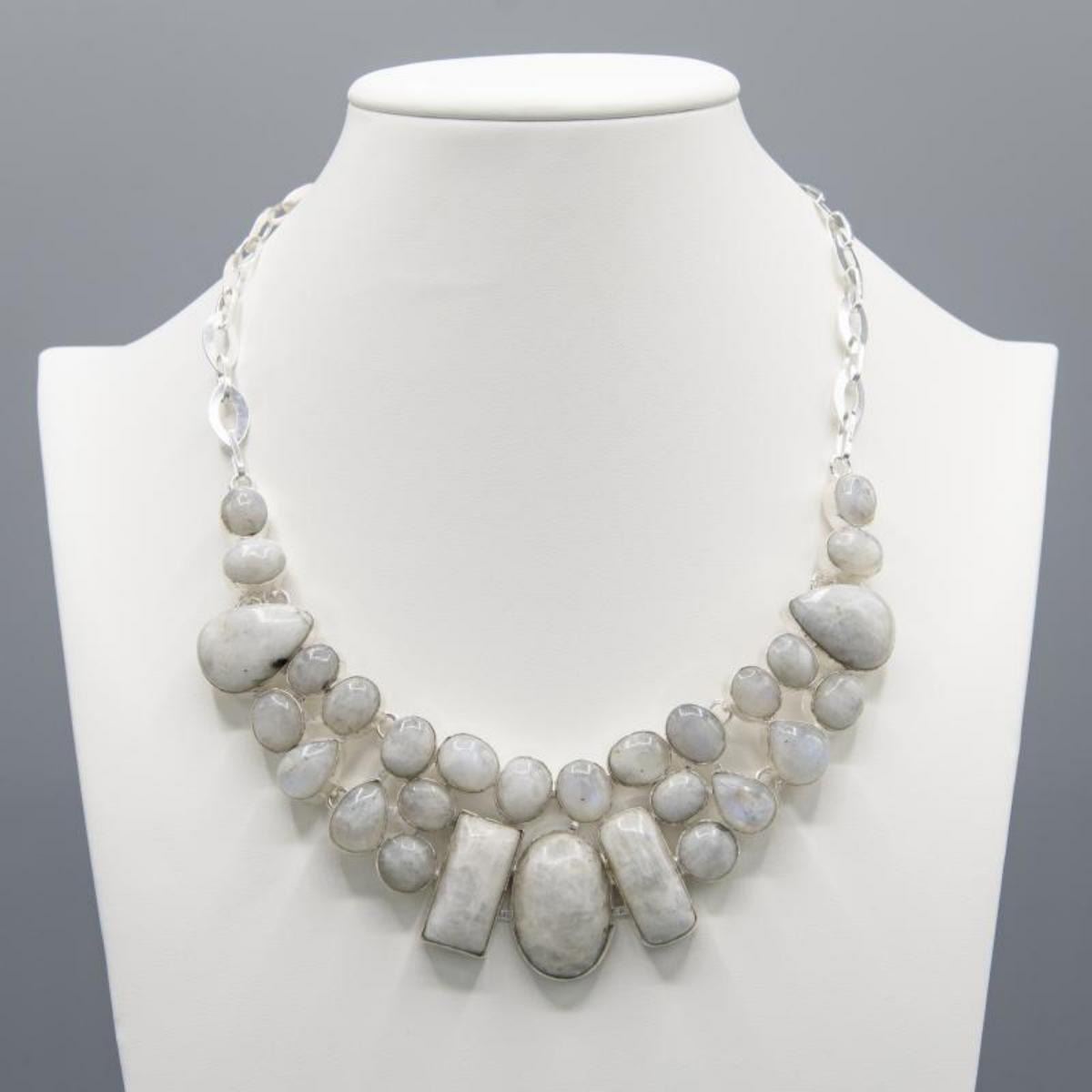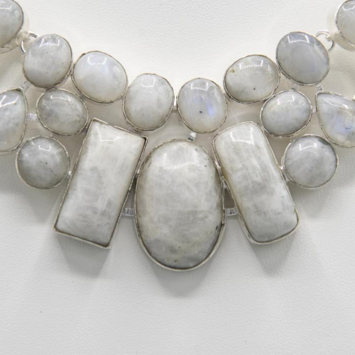 IMPRESSIVE LADIES HUGE LUMINISCENT 235 CT NATURAL MOONSTONE NECKLACE. THESE HIGHLY POLISHED AND SILKY WHITE LUMINISCENT GEMSTONES ARE MOUNTED IN .925 STERLING SILVER.18 " LONG. 509 Cttw or 102.65 TOTAL GRAM WEIGHT. ABSOLUTELY GORGEOUS. DON'T MIS THIS ONE.