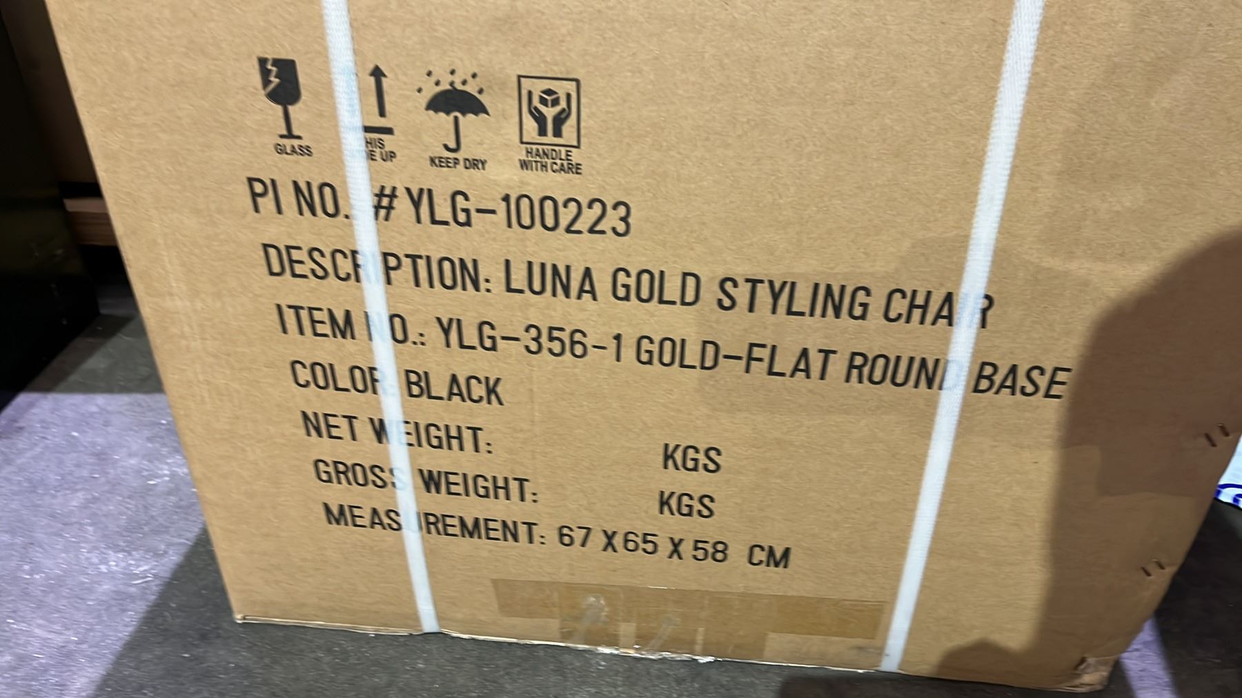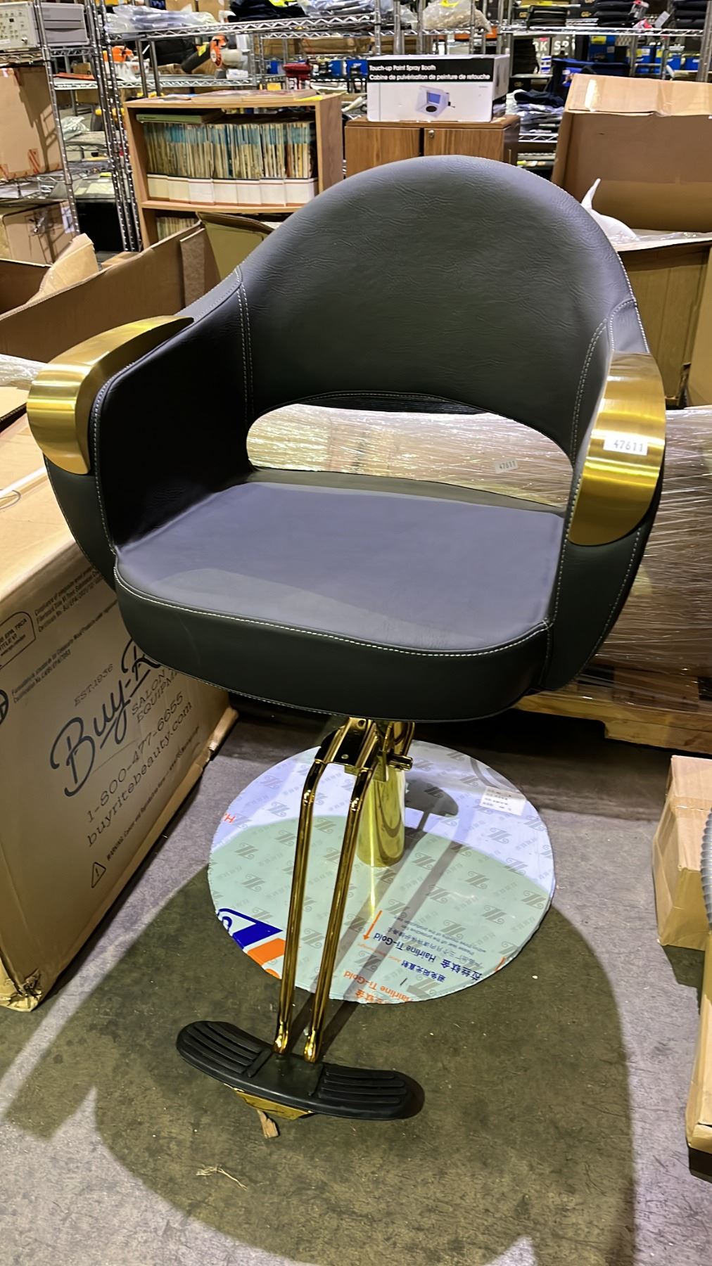 LUNA GOLD STYLING CHAIR WITH ROUND BASE - BLACK *NEW IN BOX*
