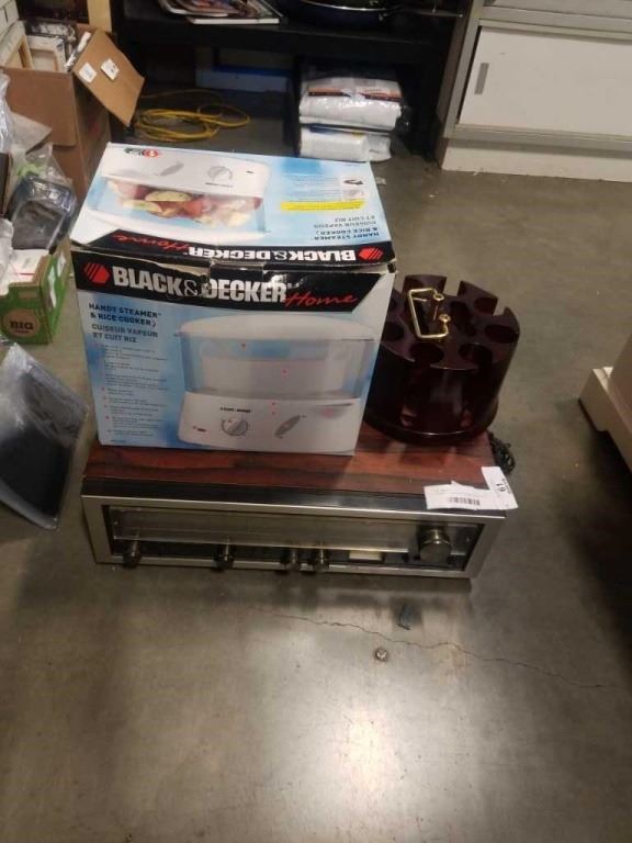 LUXMAN SOLID STATE STEREO RECEIVER, BLACK AND DECKER HANDY STEAMER RICE COOKER AND POKER CHIP HOLDER