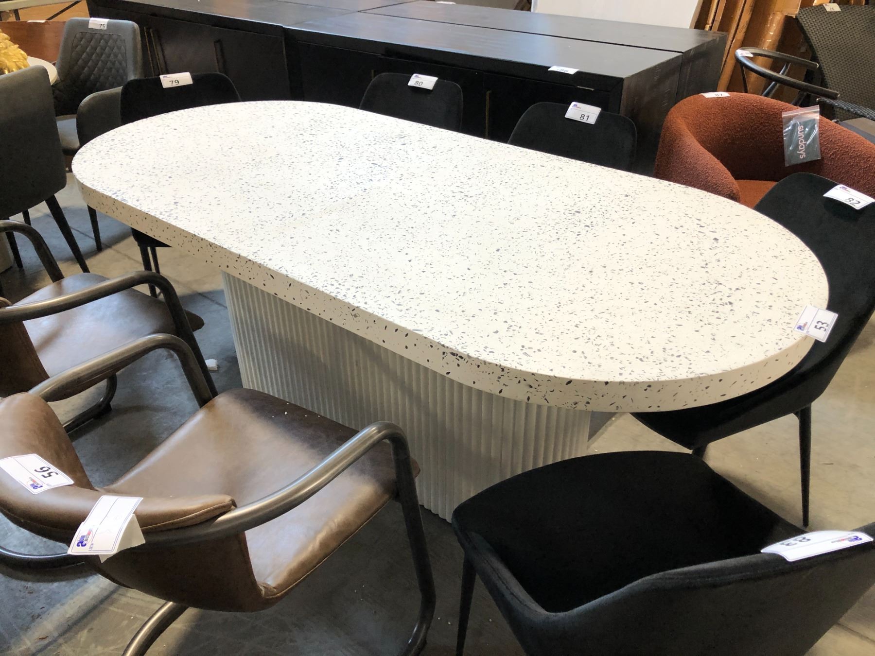 LYON WHITE SPECKLED OVAL SHAPED DINING TABLE 79"W X 35.5"D X 30.5"H WITH HOLLOW CONCRETE BASE