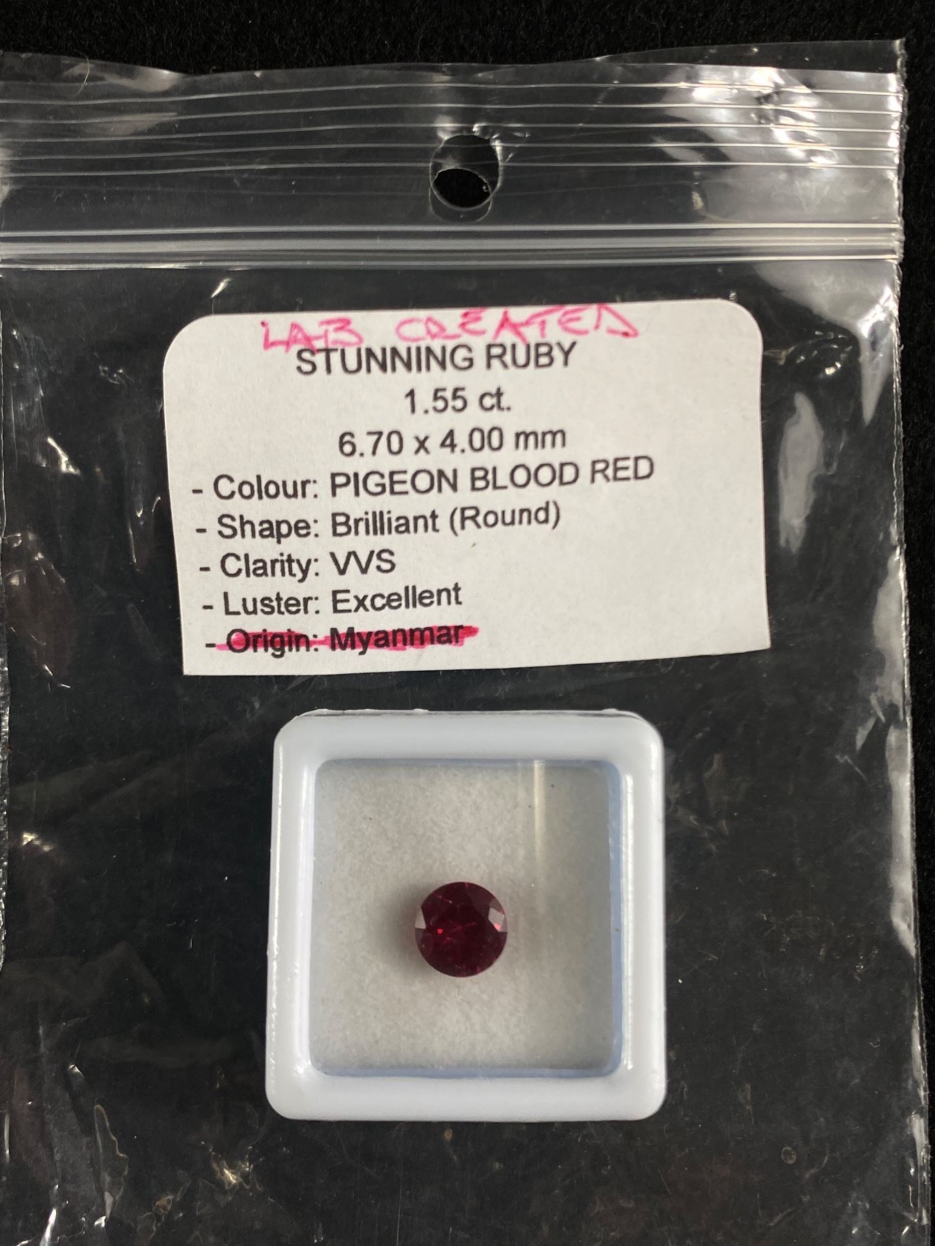 Lab Created Stunning Ruby 1.55ct. Pigeon Blood Red- Brilliant Round-VVS