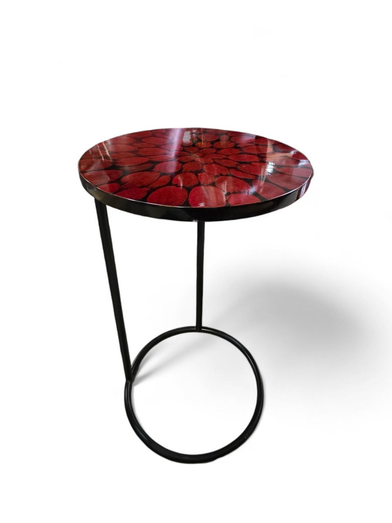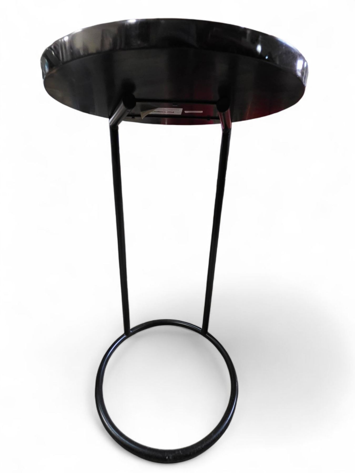 Lacquered Round Side Table with Metal Legs - 26" tall x 15" diameter