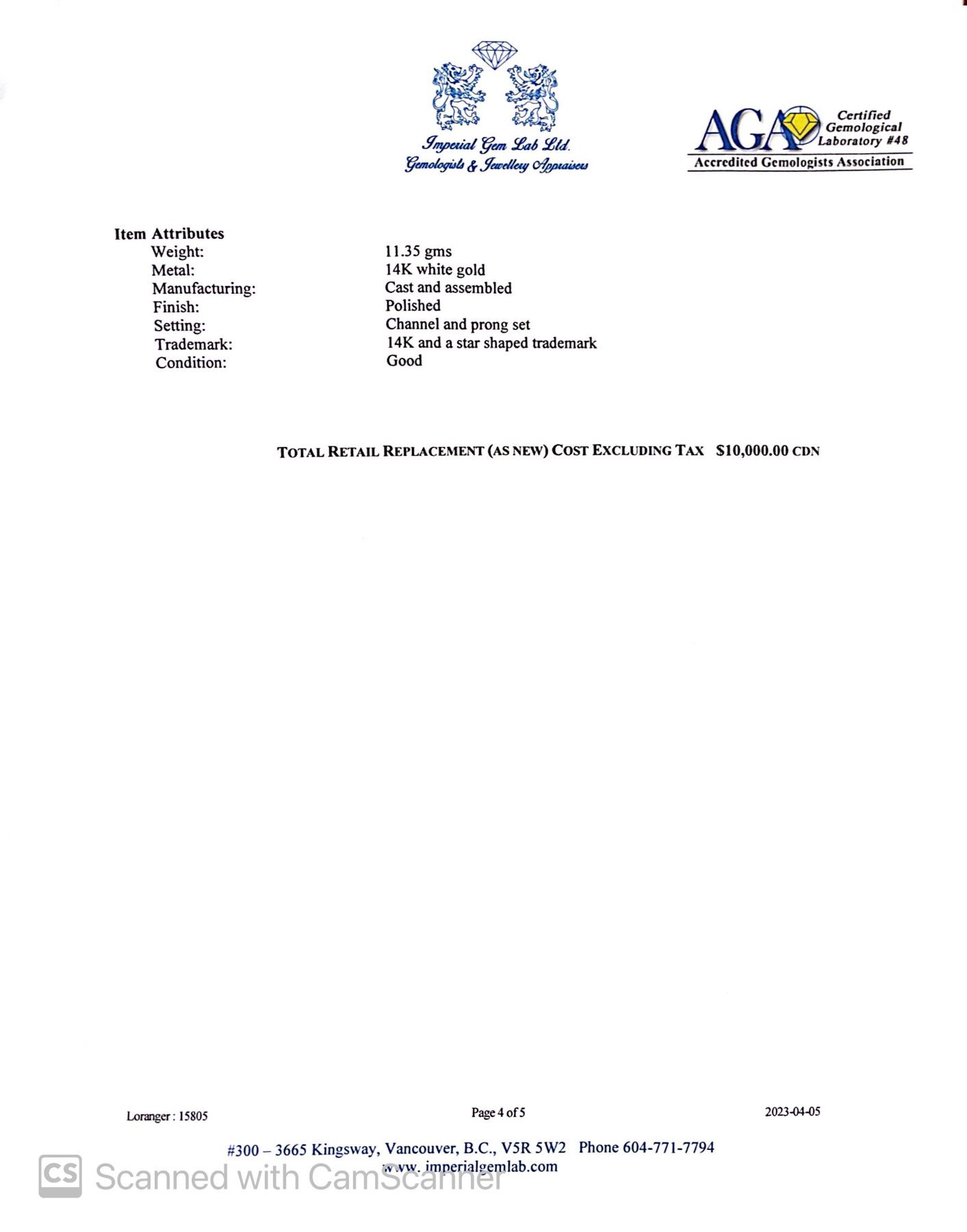 Ladies 14KT white gold diamond engagement ring. Appraised value $10,000 CAN. Ring details: