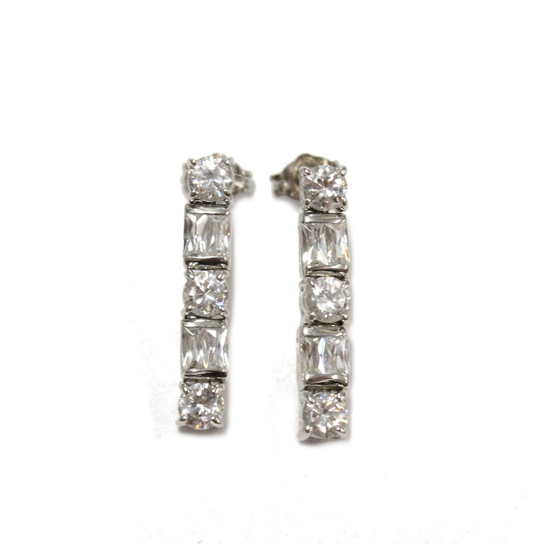 Ladies Dangling Sterling Silver Gemstone Earrings stamped 925 New. Our line of New, Never worn fine Silver jewelry is comprised of .925 Sterling Silver, each item is stamped .925 , Our jewelers use only the finest semi-precious gemstones. All gemstones are C.Z. or synthetic & handset by expert craftsmen. The “Look of Platinum” has been attained by plating the entire collection with rhodium. Not only does rhodium have an exclusive appearance that is bright, resilient with hypoallergenic properties, paired with the Sterling Silver it leaves a beautiful protective luster. This Beautiful Fine Line of Jewelry will make an excellent gift for your loved ones on the upcoming Holiday's, Christmas, New Years, Valentines day, Anniversaries or Birthdays.