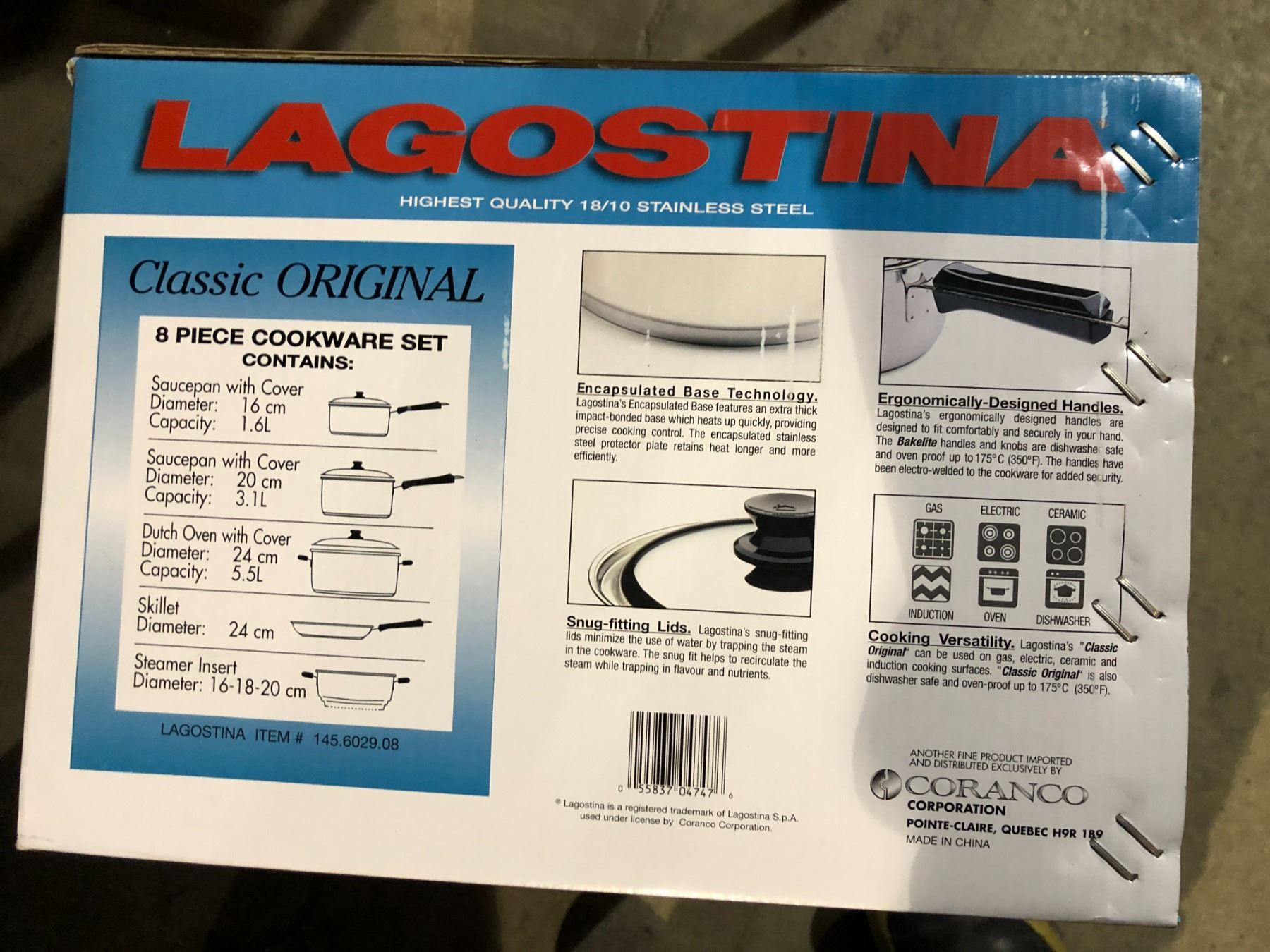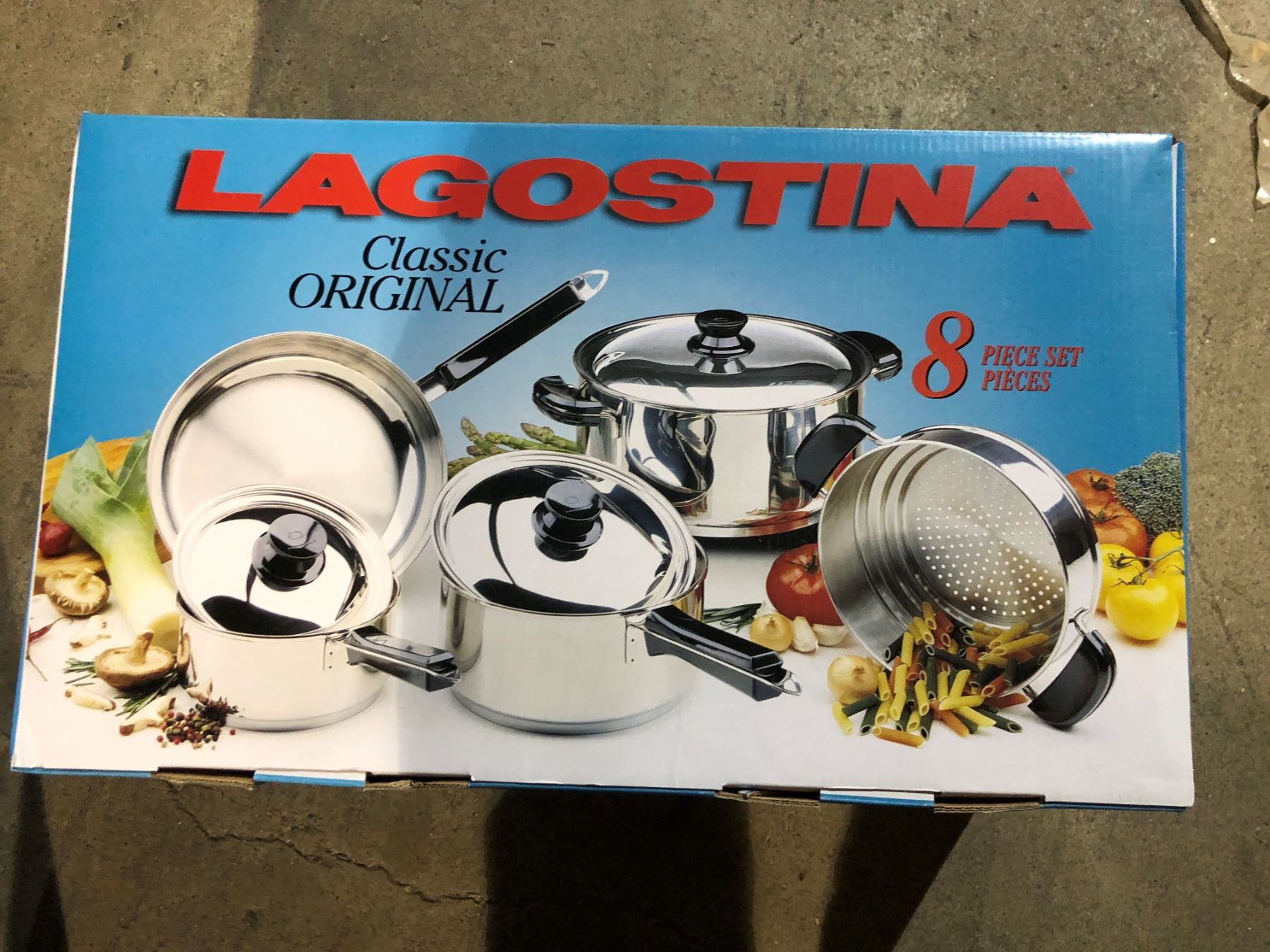 Lagostina 8 Piece Set - Kitchen Pots/Strainer/Frying Pan with Lids - Made in Italy - Lifetime Warranty from Manufacturer - Brand New In Box